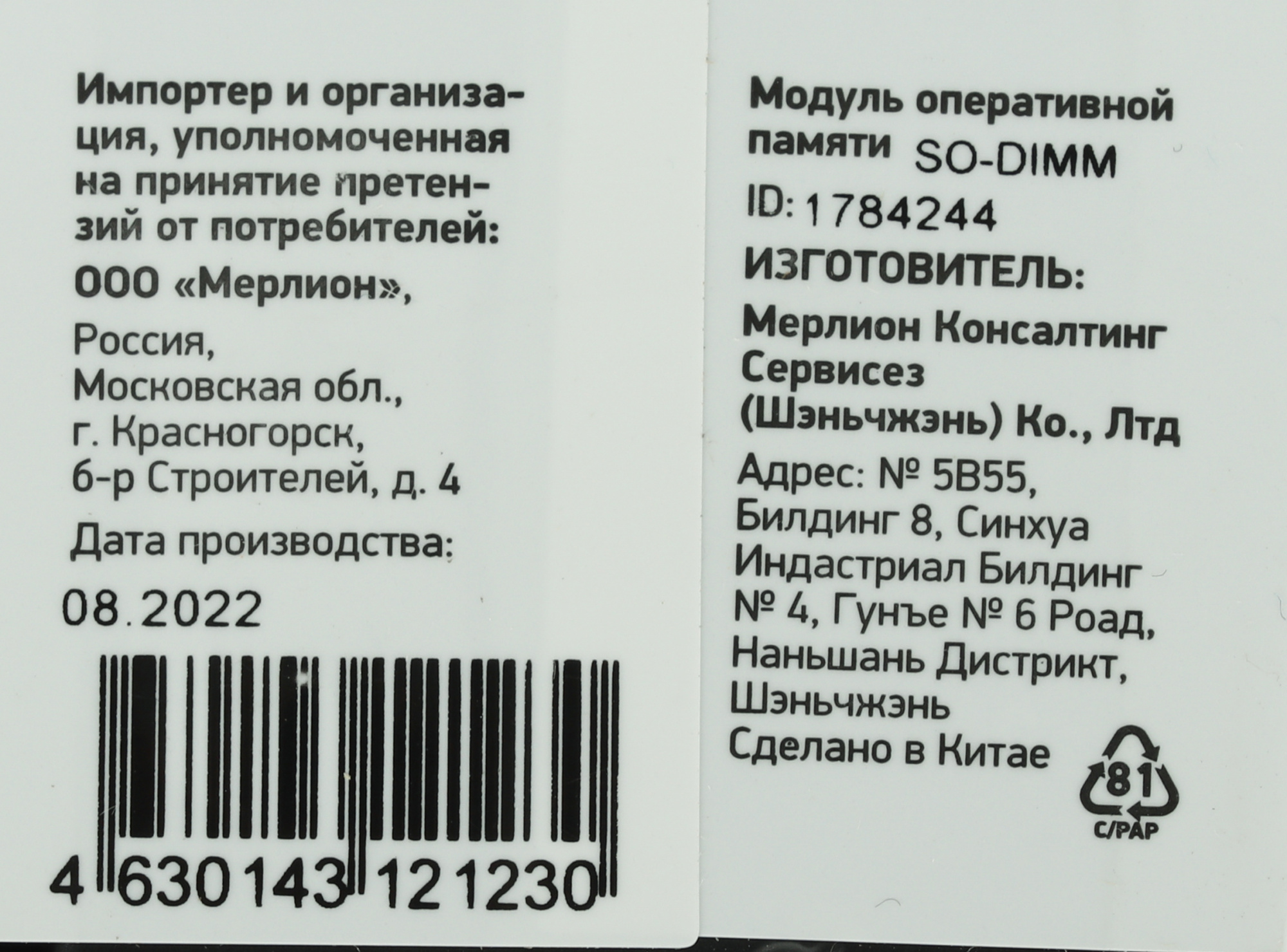 Модуль памяти Digma 8Gb DDR3L 1600MHz PC3-12800 CL11 SO-DIMM 204-pin 1.35В dual rank RTL [DGMAS31600008D]