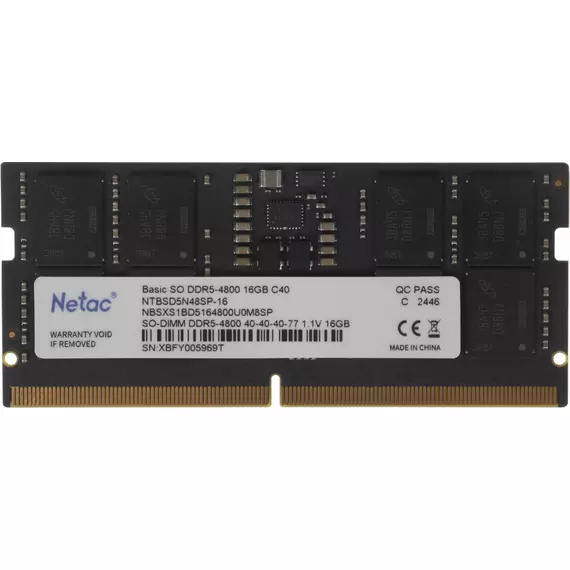 Память Netac Basic 16GB DDR5 4800MHz Gaming PC5-38400 CL40 SO-DIMM 262-pin 1.1В original Intel RTL [NTBSD5N48SP-16]