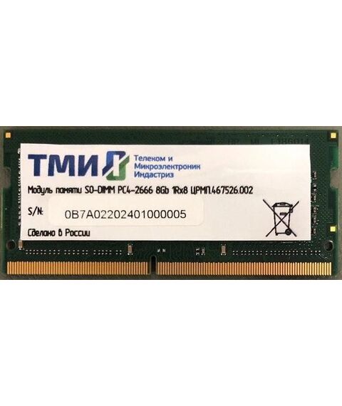 Модуль памяти ТМИ 8Gb DDR4 2666MHz PC4-21300 CL20 SO-DIMM 260-pin 1.2В single rank OEM [ЦРМП.467526.002]