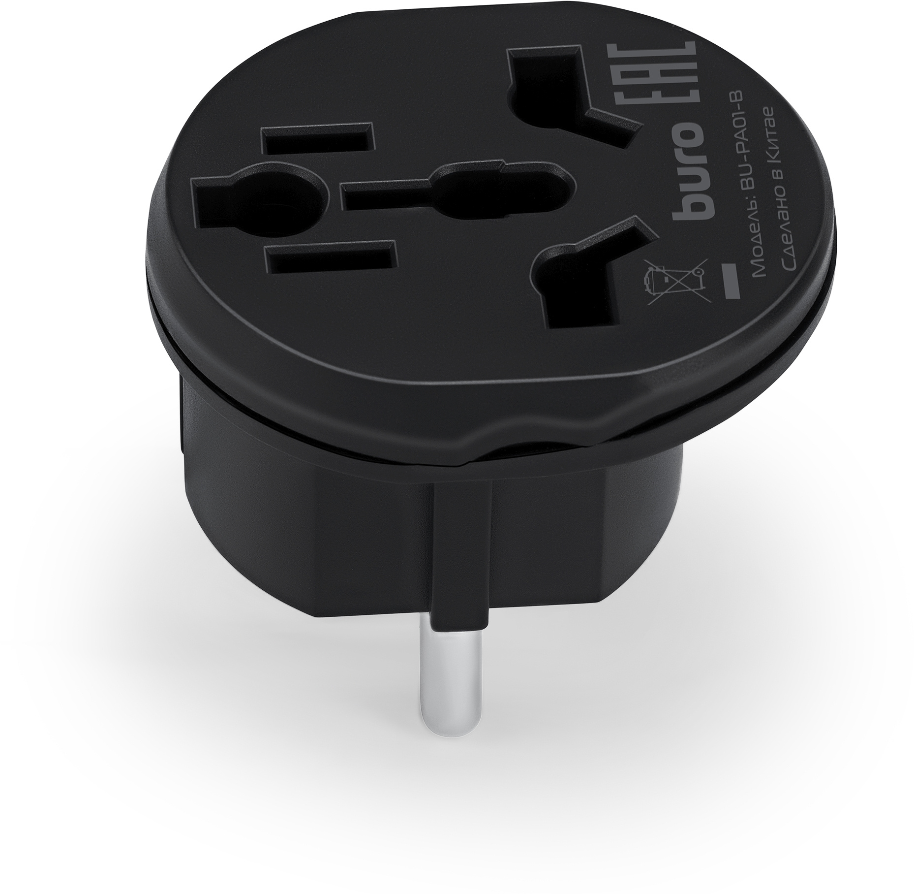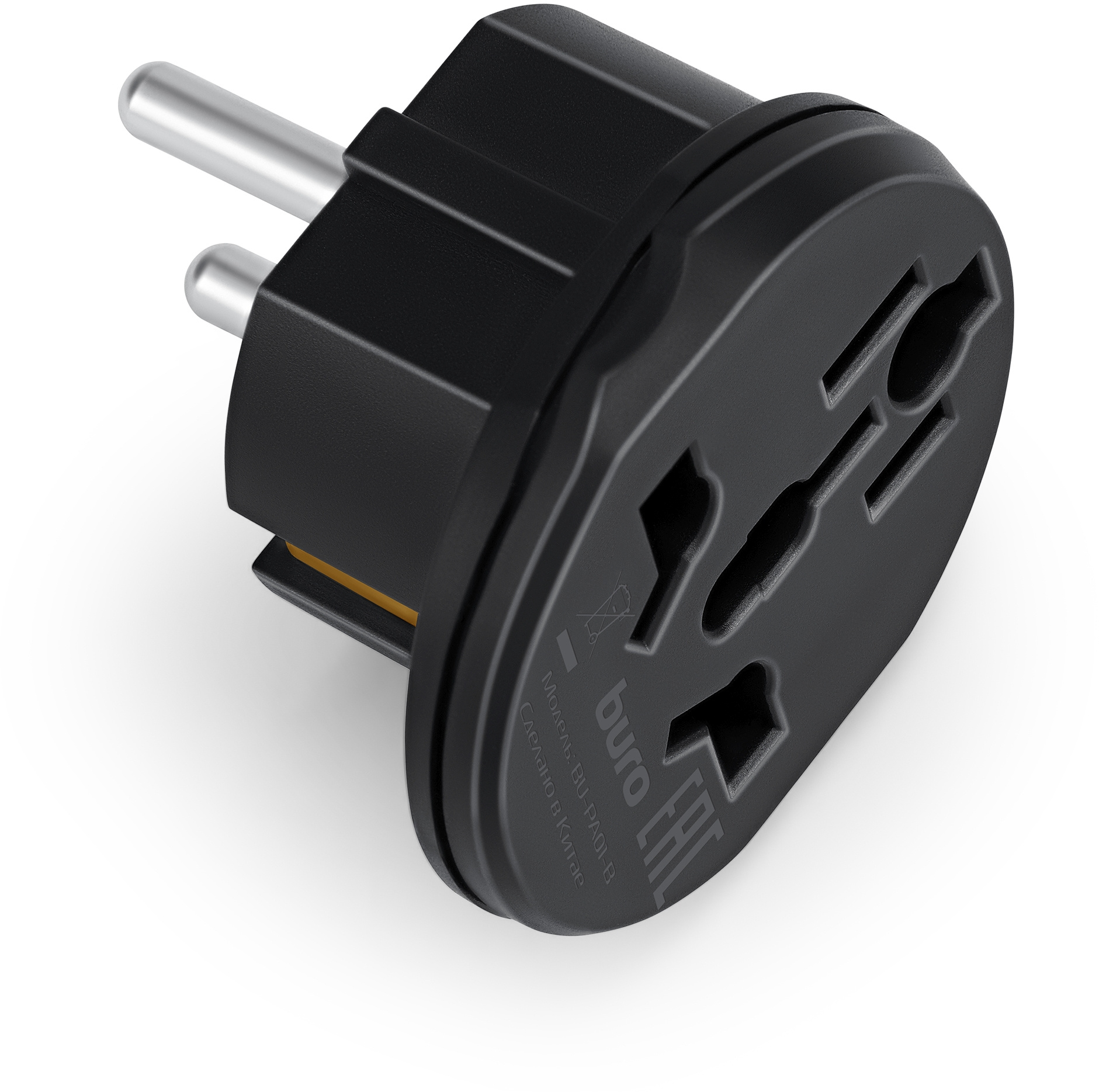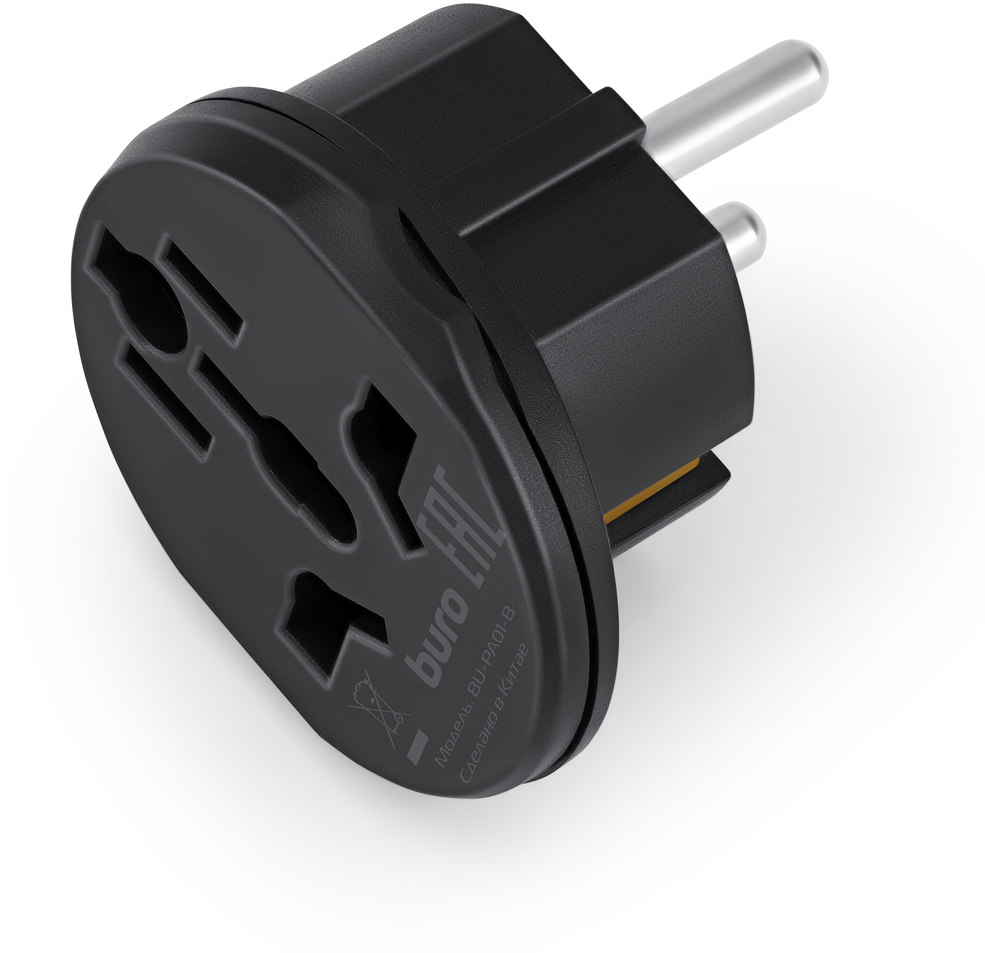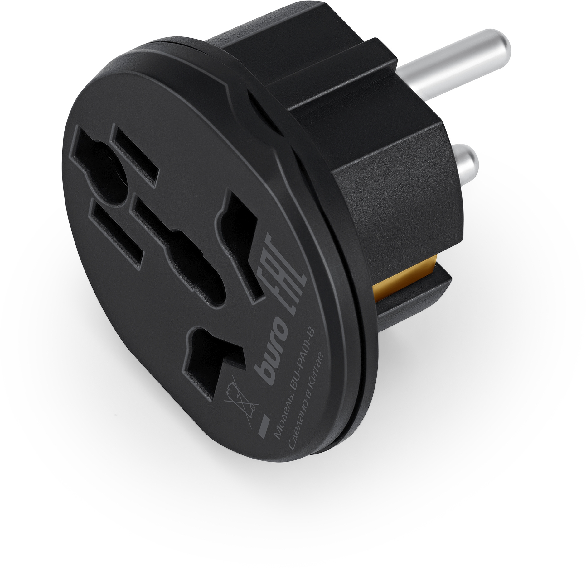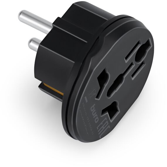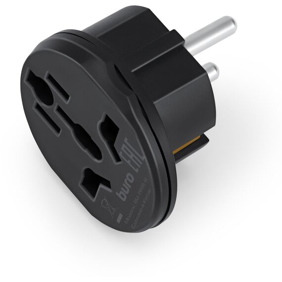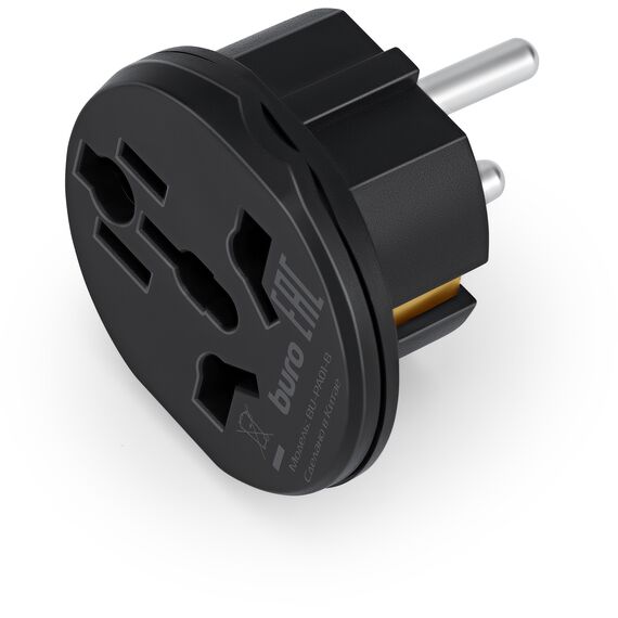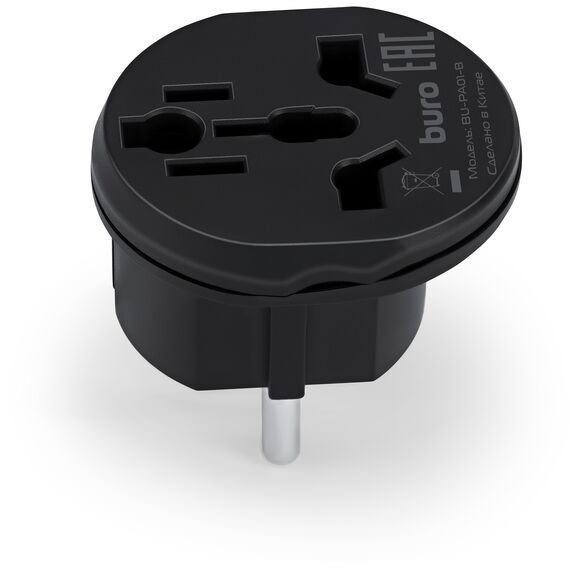 Адаптер-переходник BURO BU-PA01-B 1 розетка, черный, пакет ПЭ