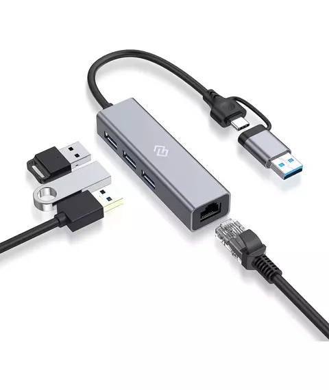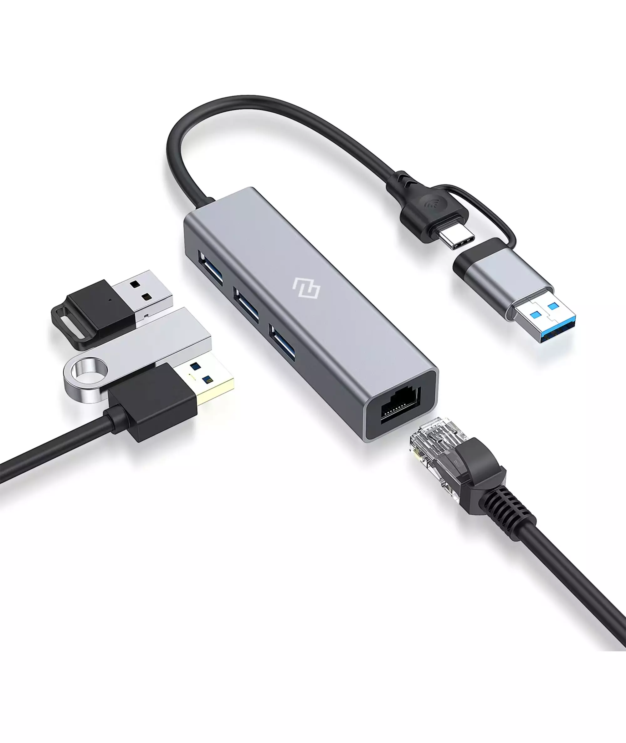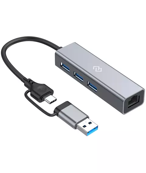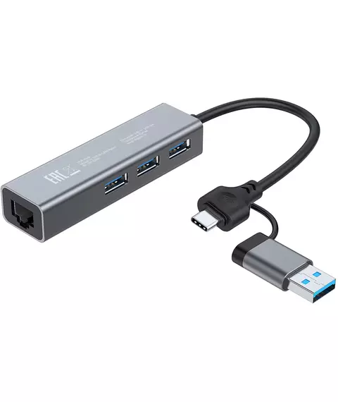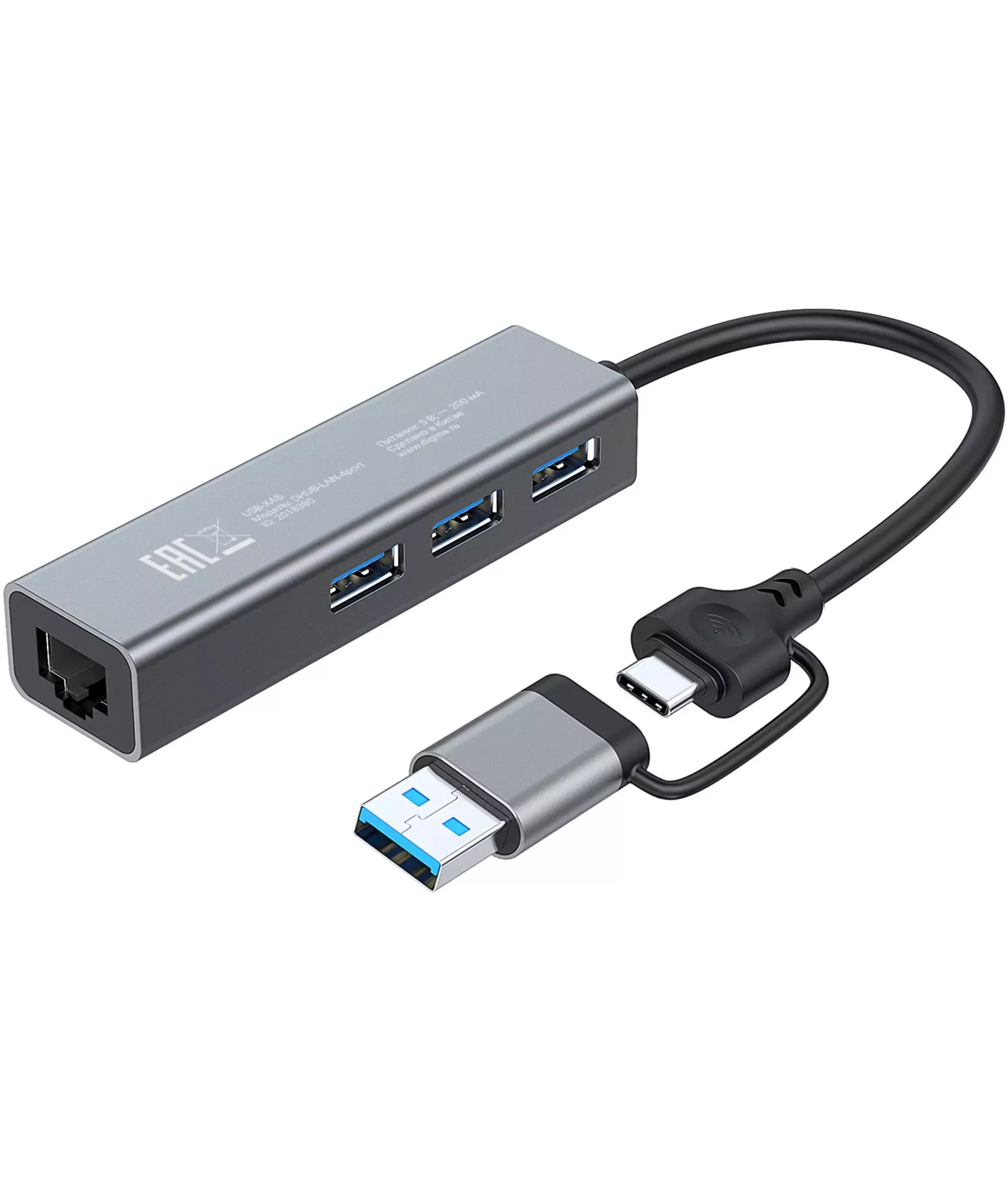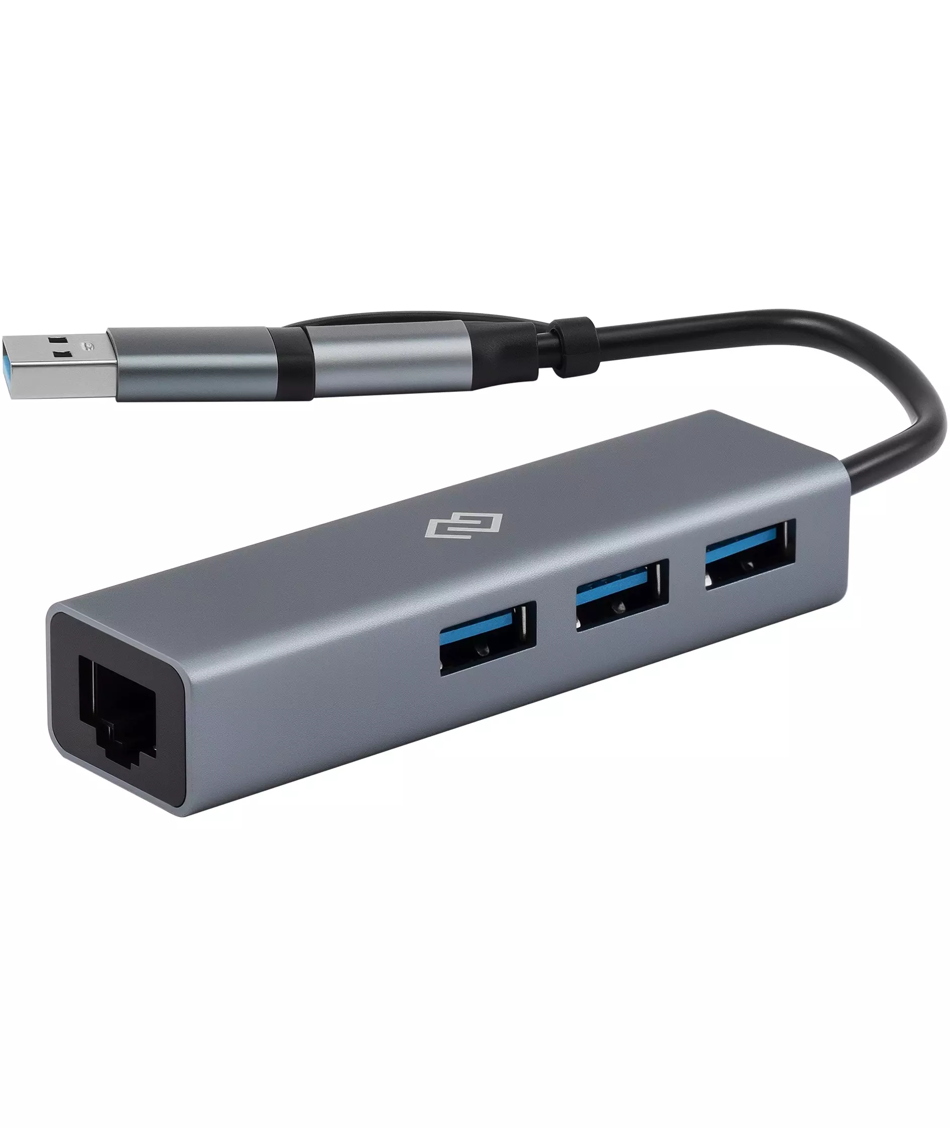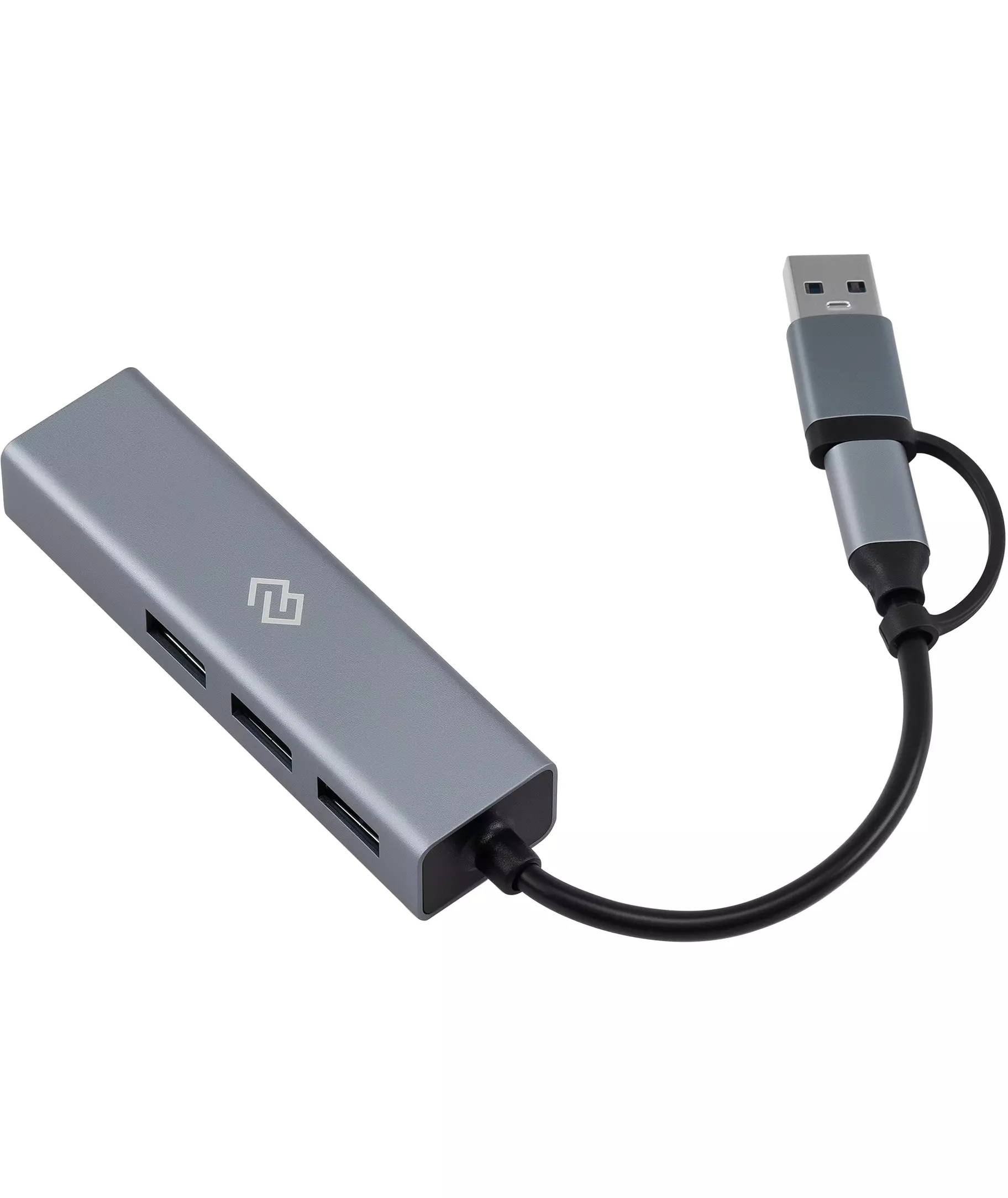 Разветвитель Digma DHUB-LAN-4port USB-C + USB-A 4 порт. серебристый