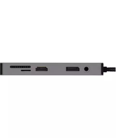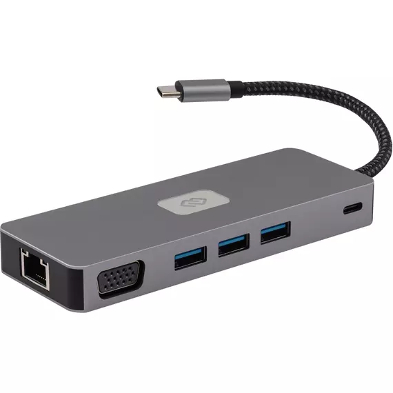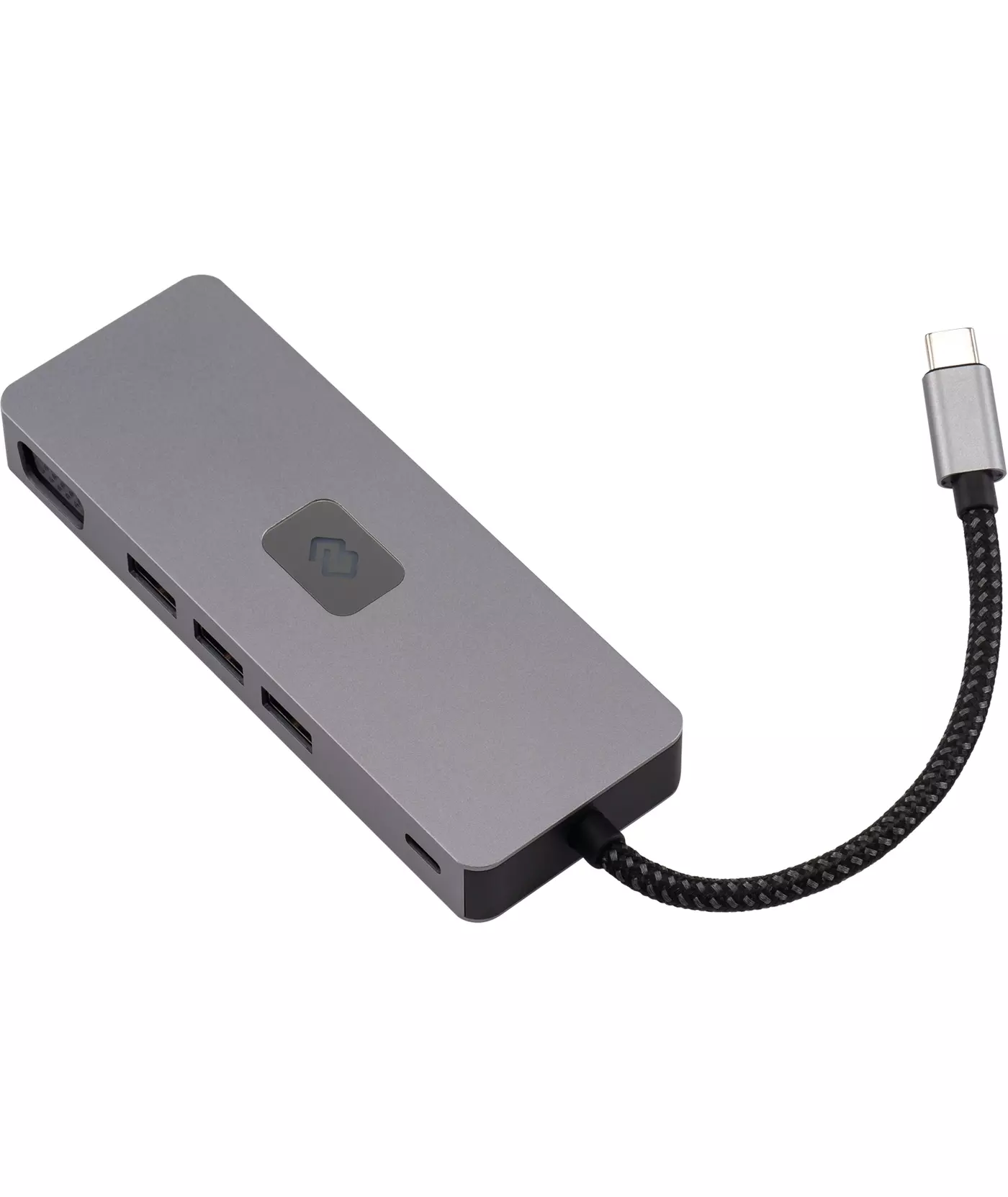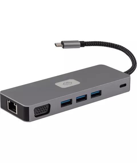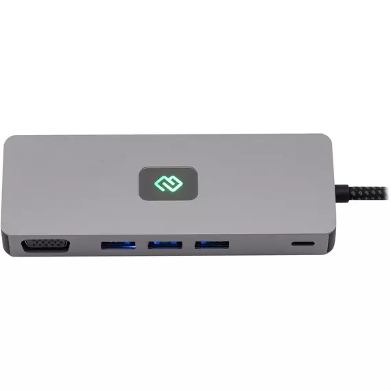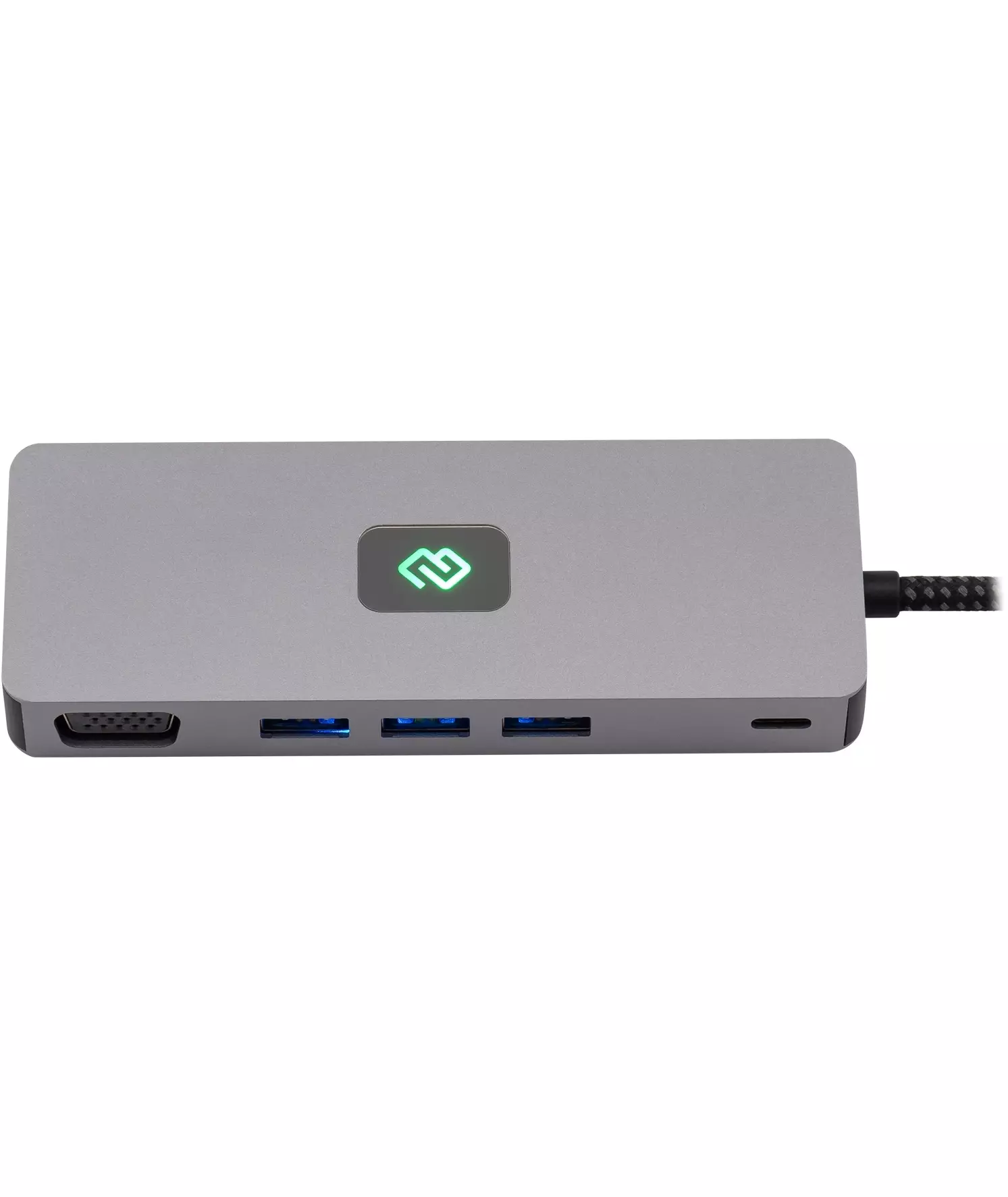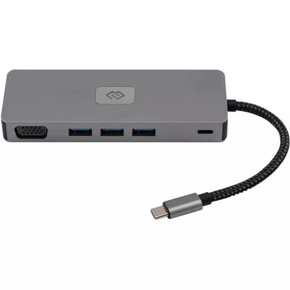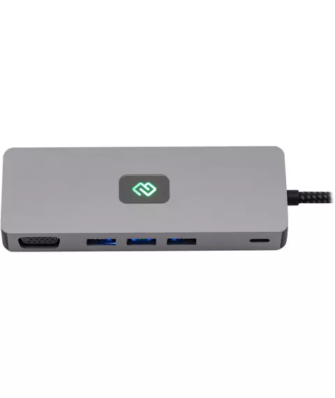 Type-C док-станция DIGMA, 11 портов. 1x HDMI( 4K@60Hz) +1 x DisplayPort ( 4K@60Hz) + 1 x VGA (Full HD@60Hz) +3 x USB-A 3.2(10Gbps) + 1 x Gigabit Ethernet + 1 x USB-C PD 3.0 100W + 1 x 3.5mm Audio + SD+ TF/MicrоSD