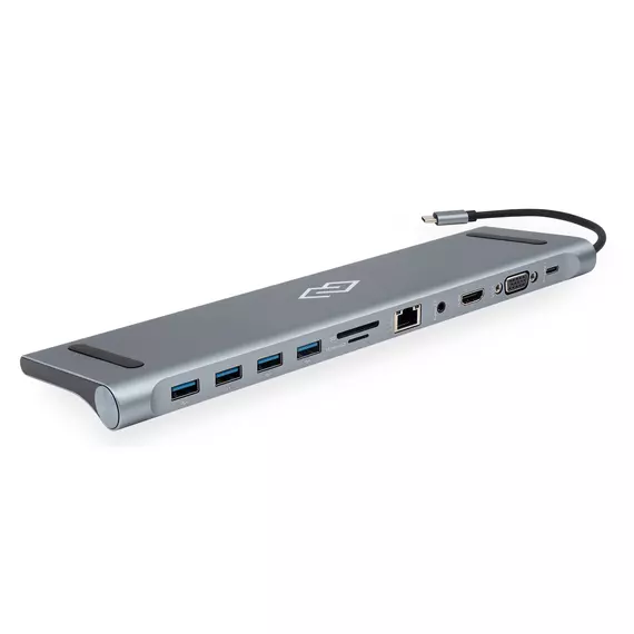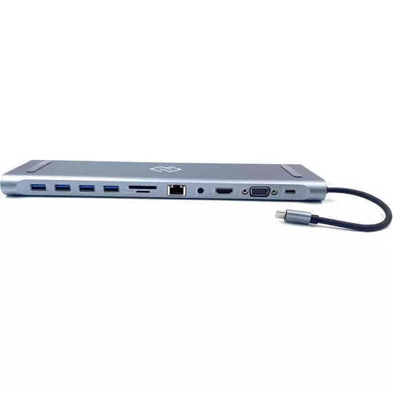 Type-C док-станция DIGMA, 11 портов (HDMI (4K@30Hz, FULL HD@60Hz) , VGA FULLHD@60Hz, USB-C PD 87W, SD/MicroSD, Lan 100mb, 3.5mm audio, 1xUSB 3.0, 3xUSB 2.0