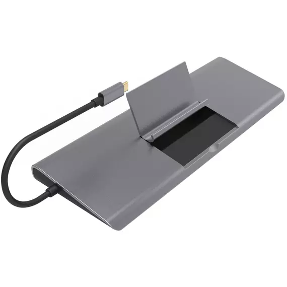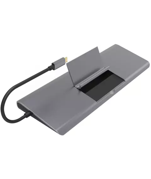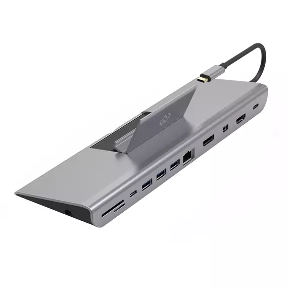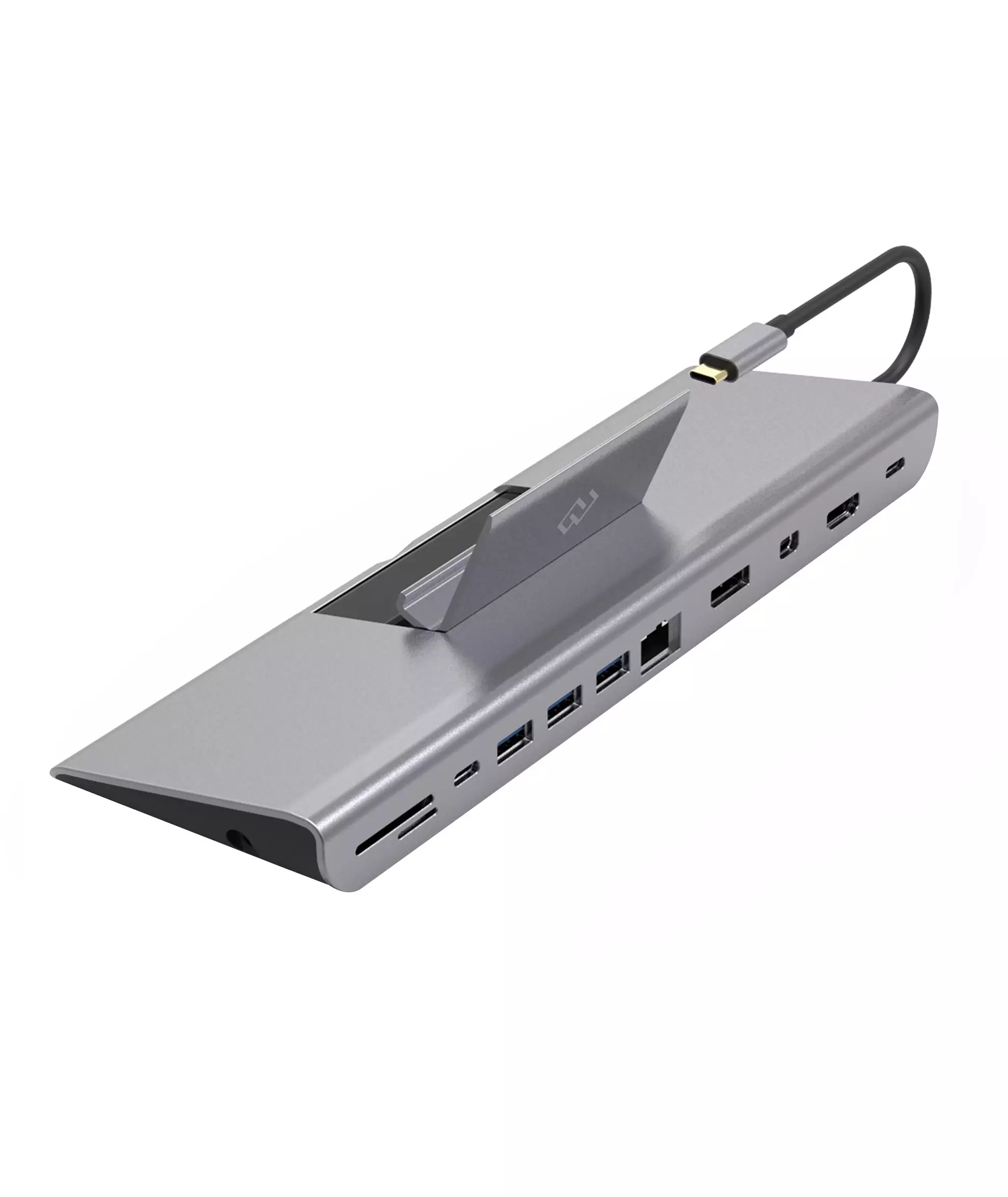 Type-C док-станция DIGMA, 12 портов. 1*HDMI(4K@60Hz), 1*DisplayPort(4K@60Hz), 1*miniDisplayPort(4K@60Hz), 1*LAN(1000M), 3*USB 3.2 Gen.2-A(10Gbps), 1*MicroSD/TF(SD2.0-17M/s), 1*SD(SD2.0-17M/s), 1*USB-C 2.0 (для передачи данных), 1*AUDIO(MIC/AUDIO), 1*USB-C(PD-100W)