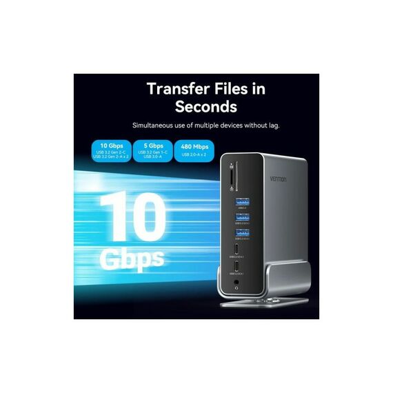 Док-станция Vention TPUH0 позволяет увеличить количество разъемов на вашем устройстве с разъемом USB Type-C. Максимальный объем считывания карт памяти до 256 Гб. Поддерживает стандарт IEEE 802.3x Flow Control (управление потоком).