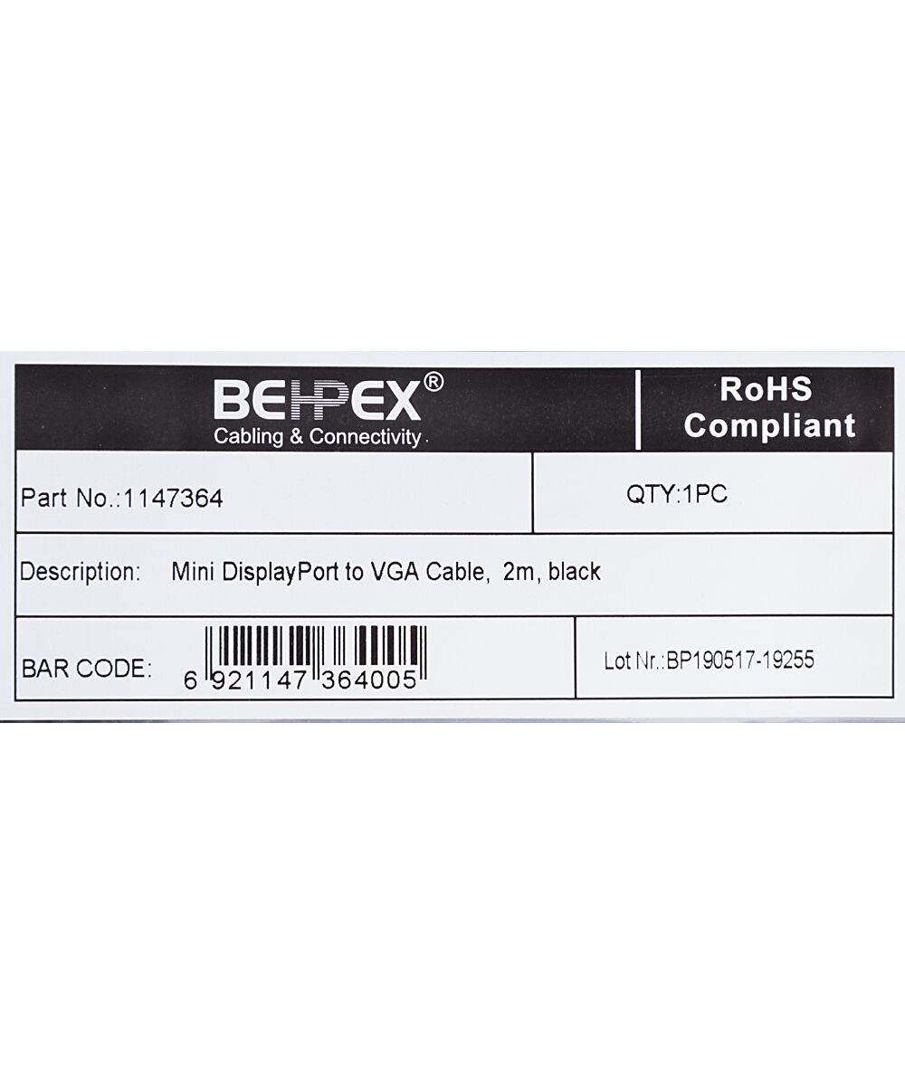 Кабель 1.1v miniDisplayPort (m) VGA (m) 2м черный