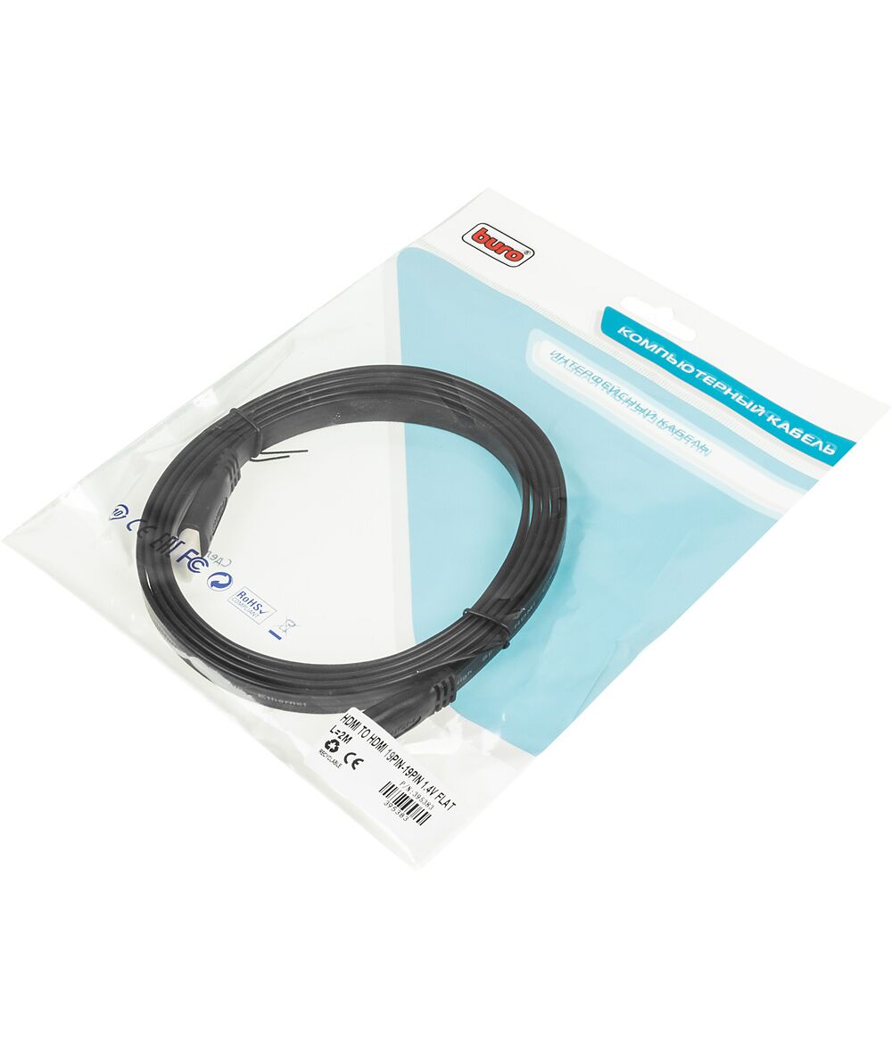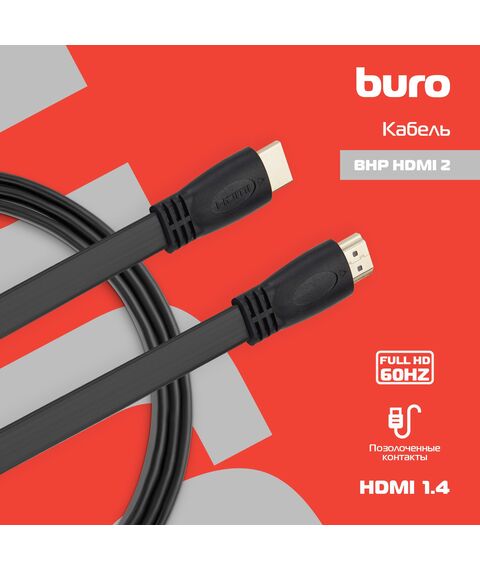 Кабель аудио-видео BURO HDMI 1.4 Flat HDMI (m)/HDMI (m) 2м. черный [BHP HDMI 2]