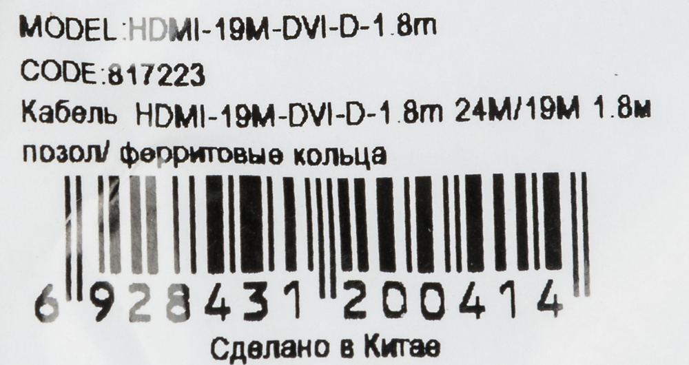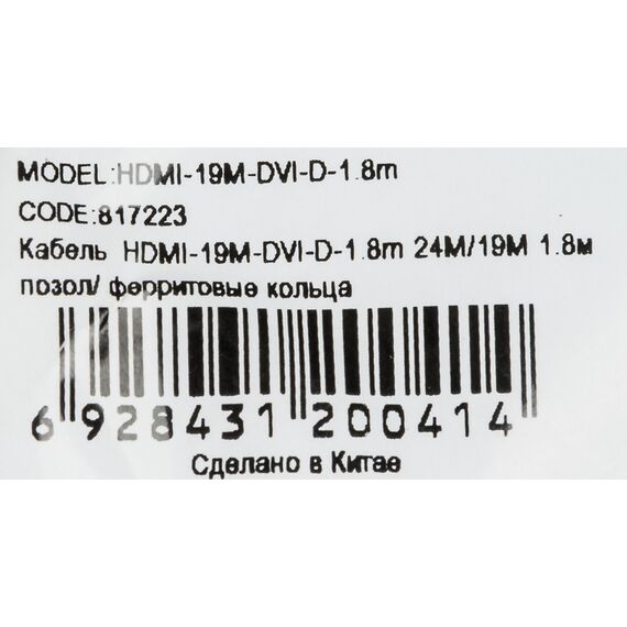 Описание BURO HDMI (m) DVI-D (m) 1.8м [HDMI-19M-DVI-D-1.8M]