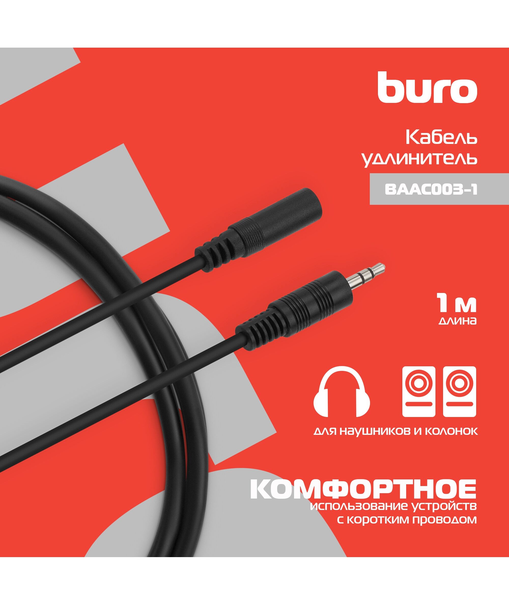 Описание BURO Jack 3.5 (m)/Jack 3.5 (f) 1м. [BAAC003-1]