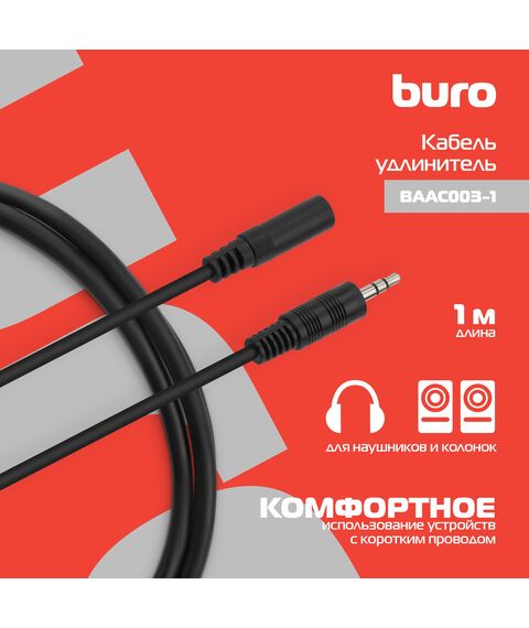 Кабель-удлинитель аудио BURO Jack 3.5 (m)/Jack 3.5 (f) 1м. черный [BAAC003-1]