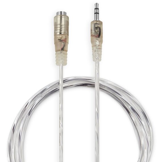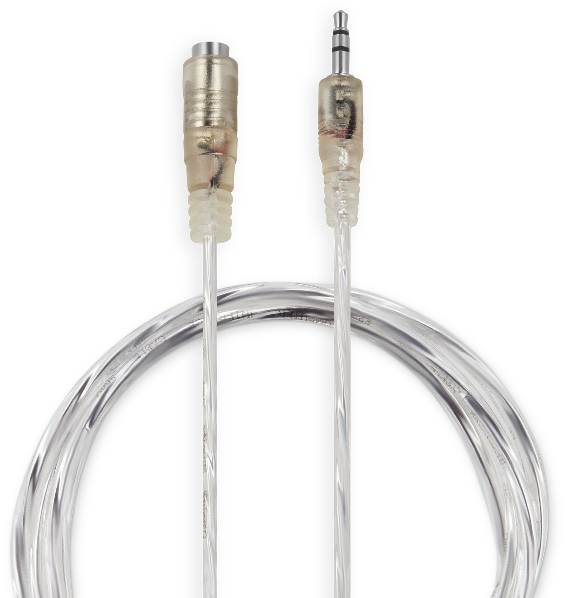 Прозрачный кабель-удлинитель для проводов наушников или колонок. Кабель позволит сделать использование устройств с коротким проводом гораздо комфортнее, когда это необходимо.