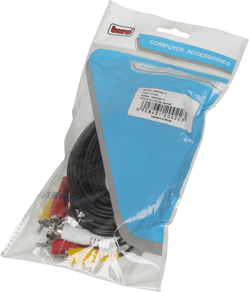 Описание BURO Кабель соединительный аудио-видео 3хRCA (m)/3хRCA (m) 5м. [BAAC027-5]