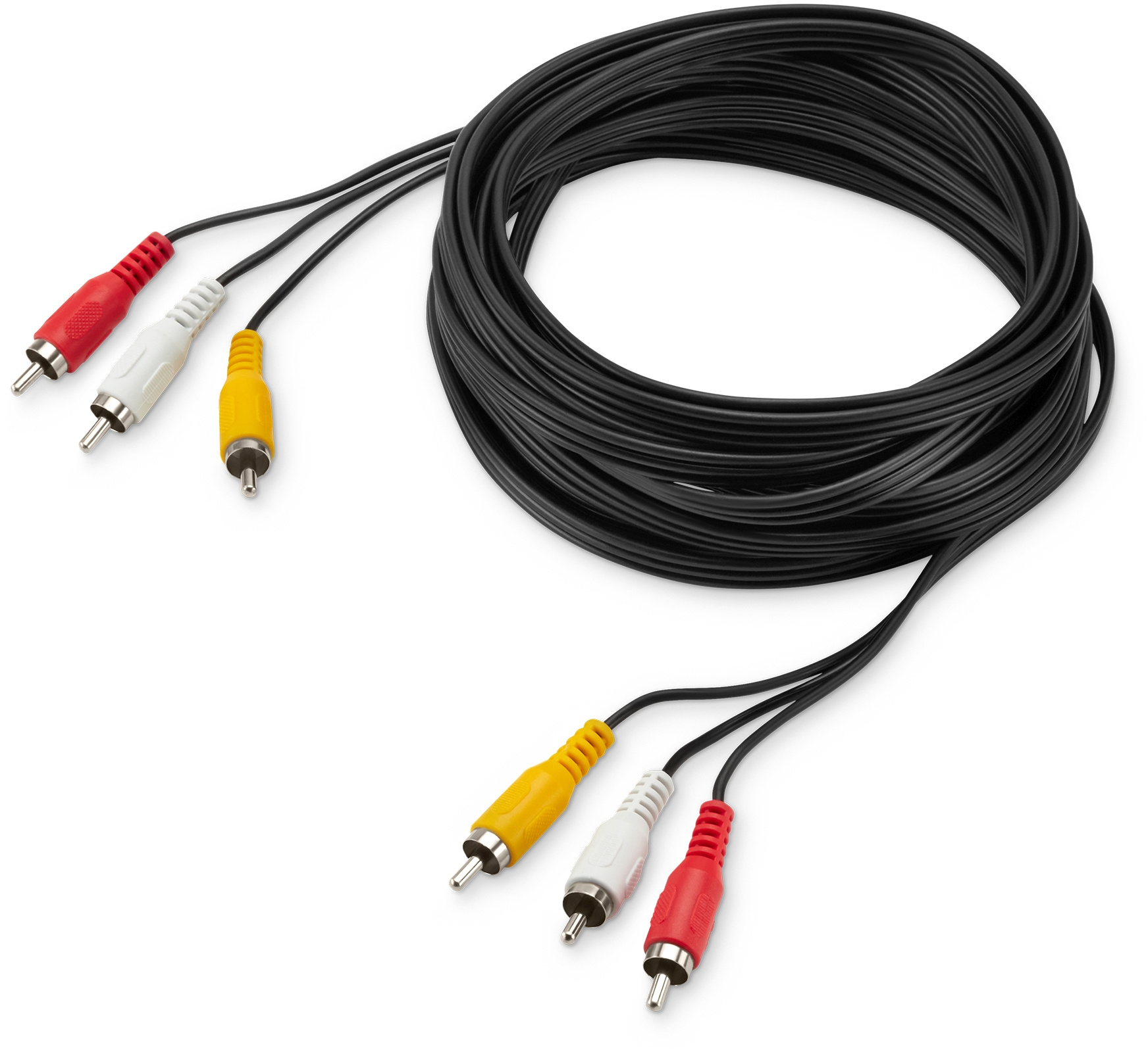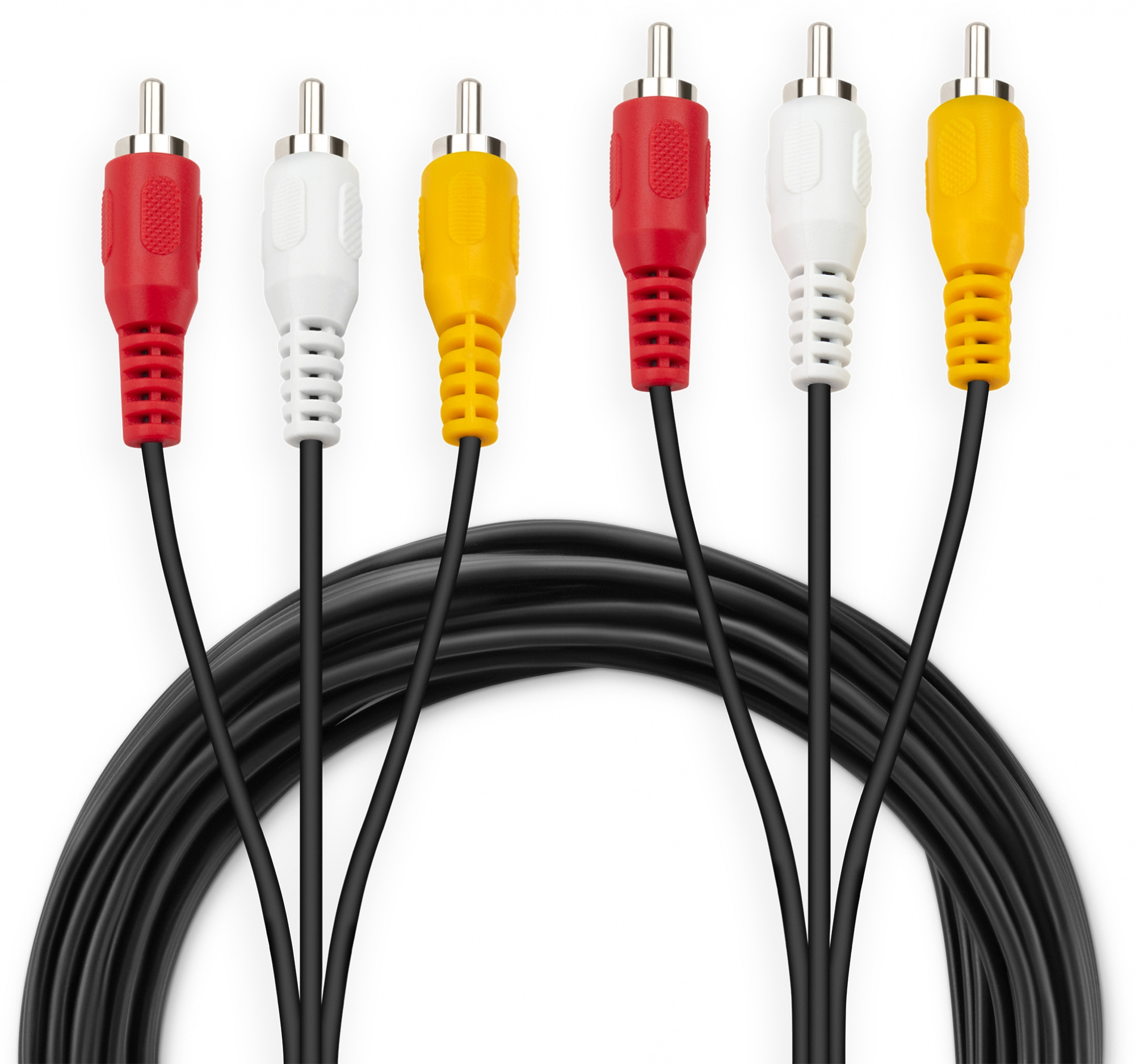 Тройной кабель RCA для передачи аудио и видеосигнала от DVD плеера или видеомагнитофона к телевизору или проектору.