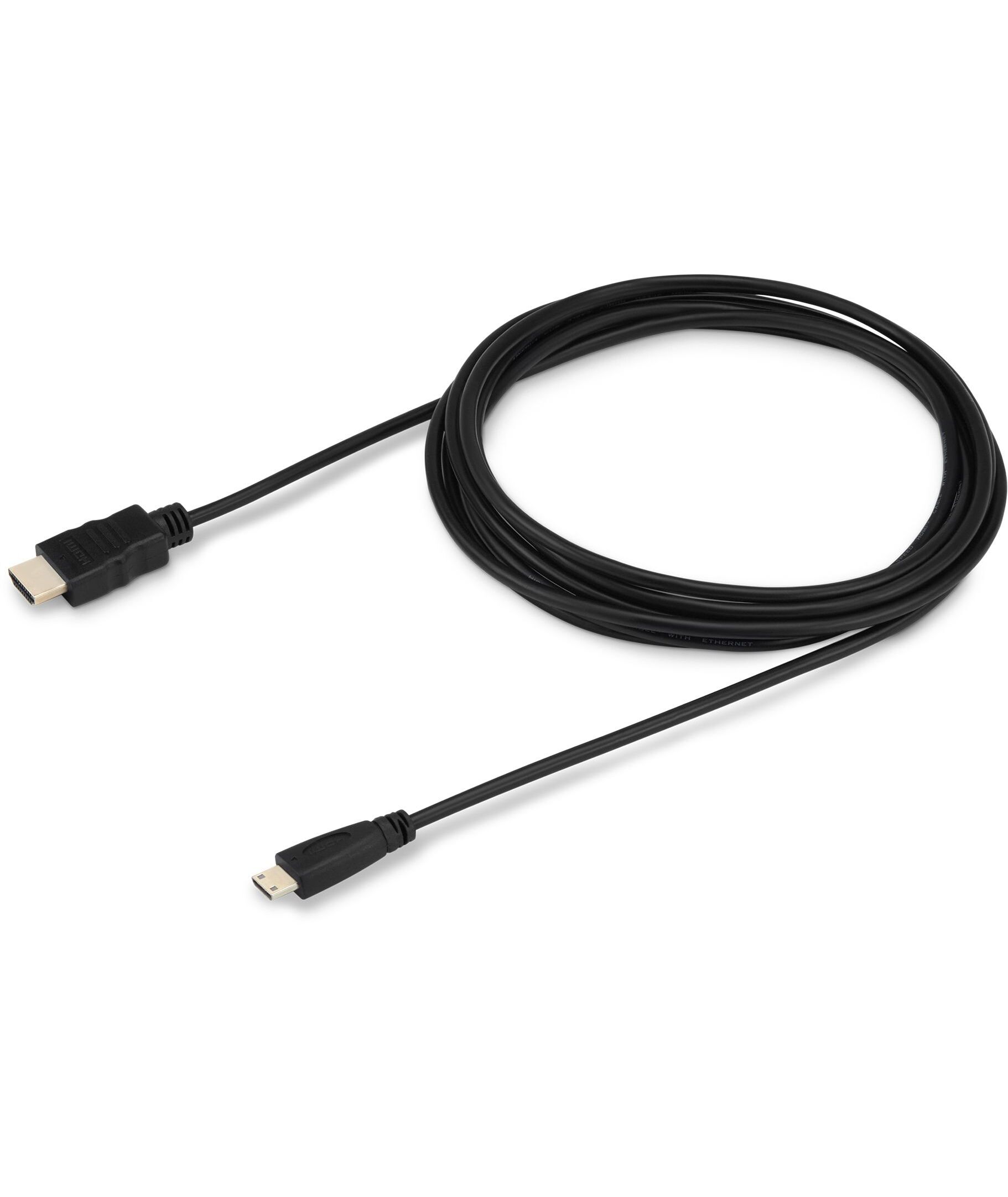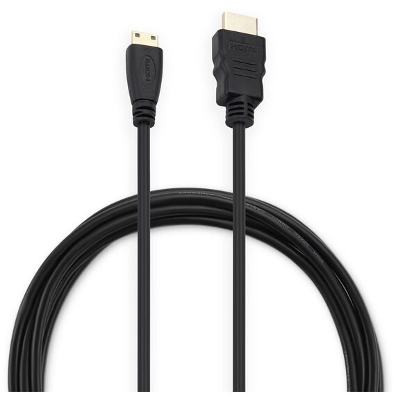 Конструкция кабеля включает разъем mini-HDMI с одной стороны и разъем HDMI с другой, что делает его универсальным решением для различных типов устройств. Кабель выполнен в черном цвете, что придает ему элегантный и ненавязчивый вид, и легко вписывается в любой интерьер.