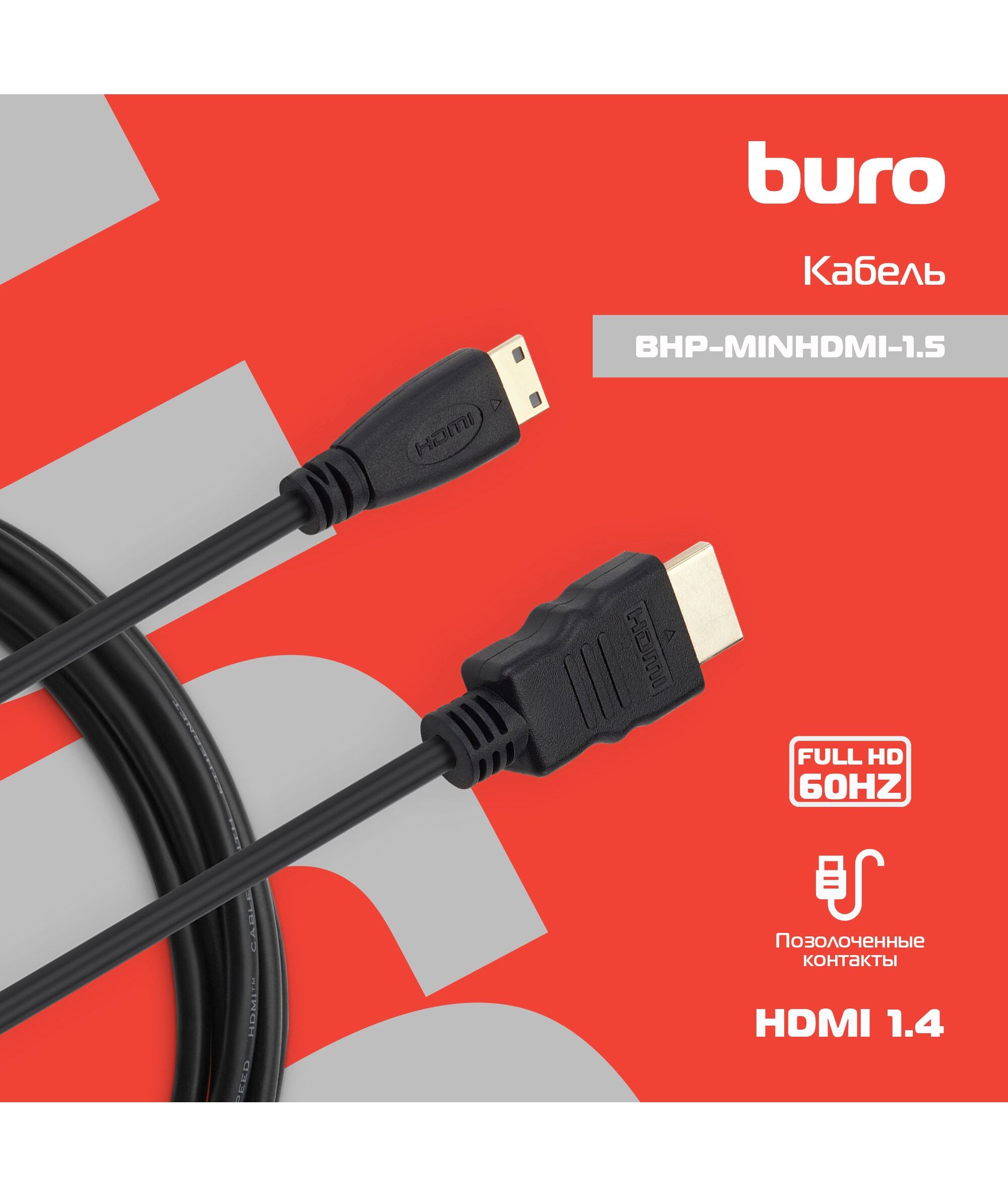 Описание BURO mini-HDMI (m)/HDMI (m) 1.5м. [BHP-MINHDMI-1.5]