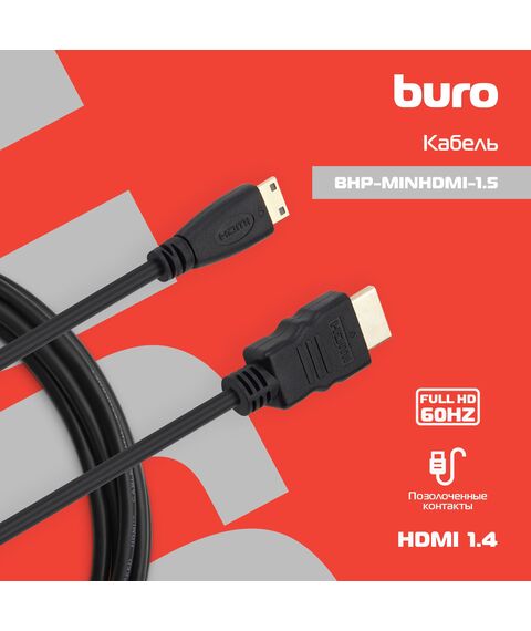 Кабель аудио-видео BURO mini-HDMI (m)/HDMI (m) 1.5м. черный [BHP-MINHDMI-1.5]