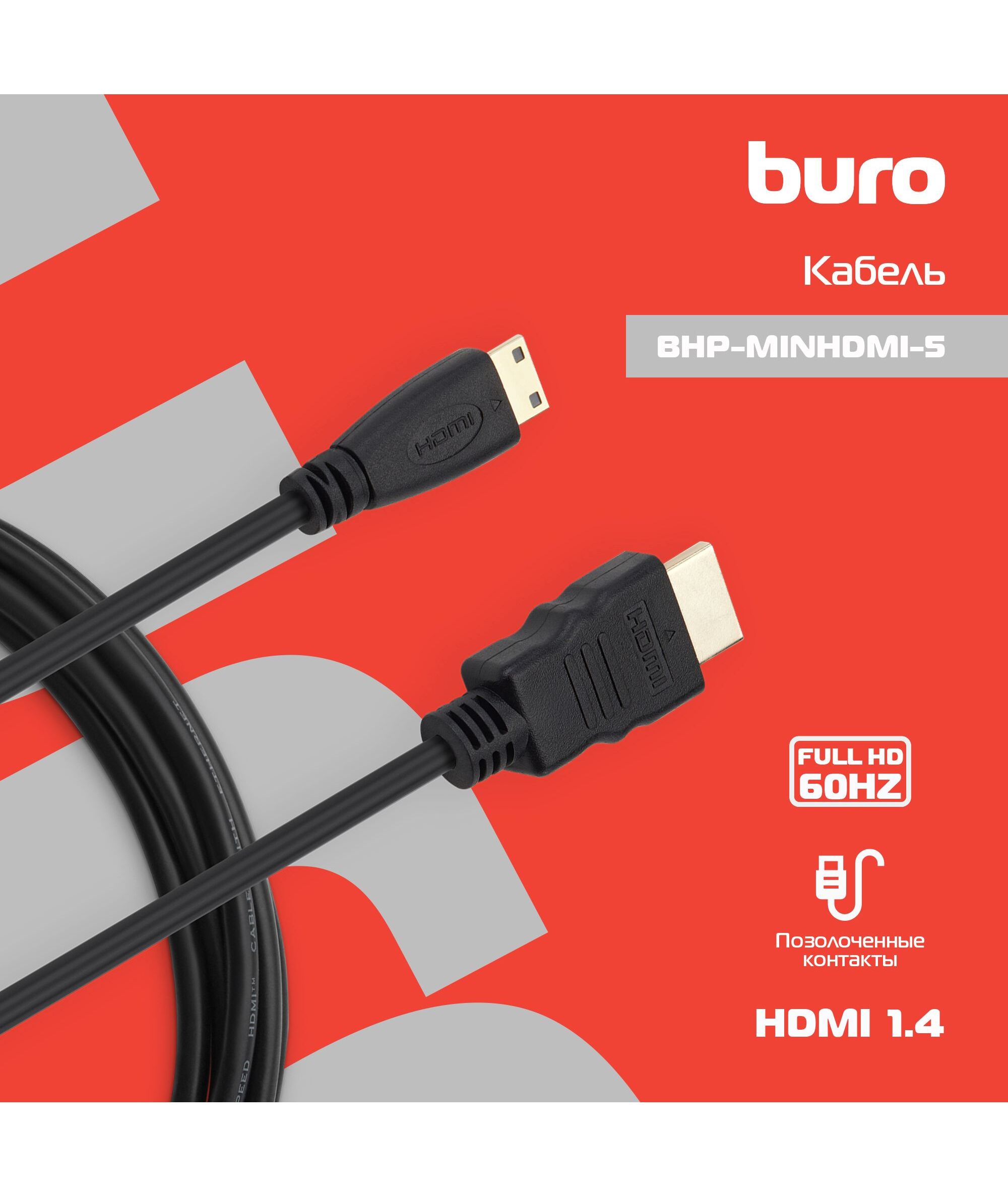 Описание BURO mini-HDMI (m)/HDMI (m) 5м. [BHP-MINHDMI-5]