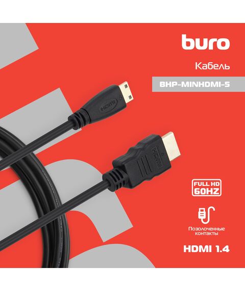 Кабель аудио-видео BURO mini-HDMI (m)/HDMI (m) 5м. черный [BHP-MINHDMI-5]