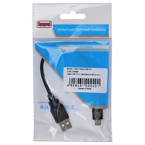 Кабель BURO OTG Buro USB (f)-micro USB (m) 0.2м черный