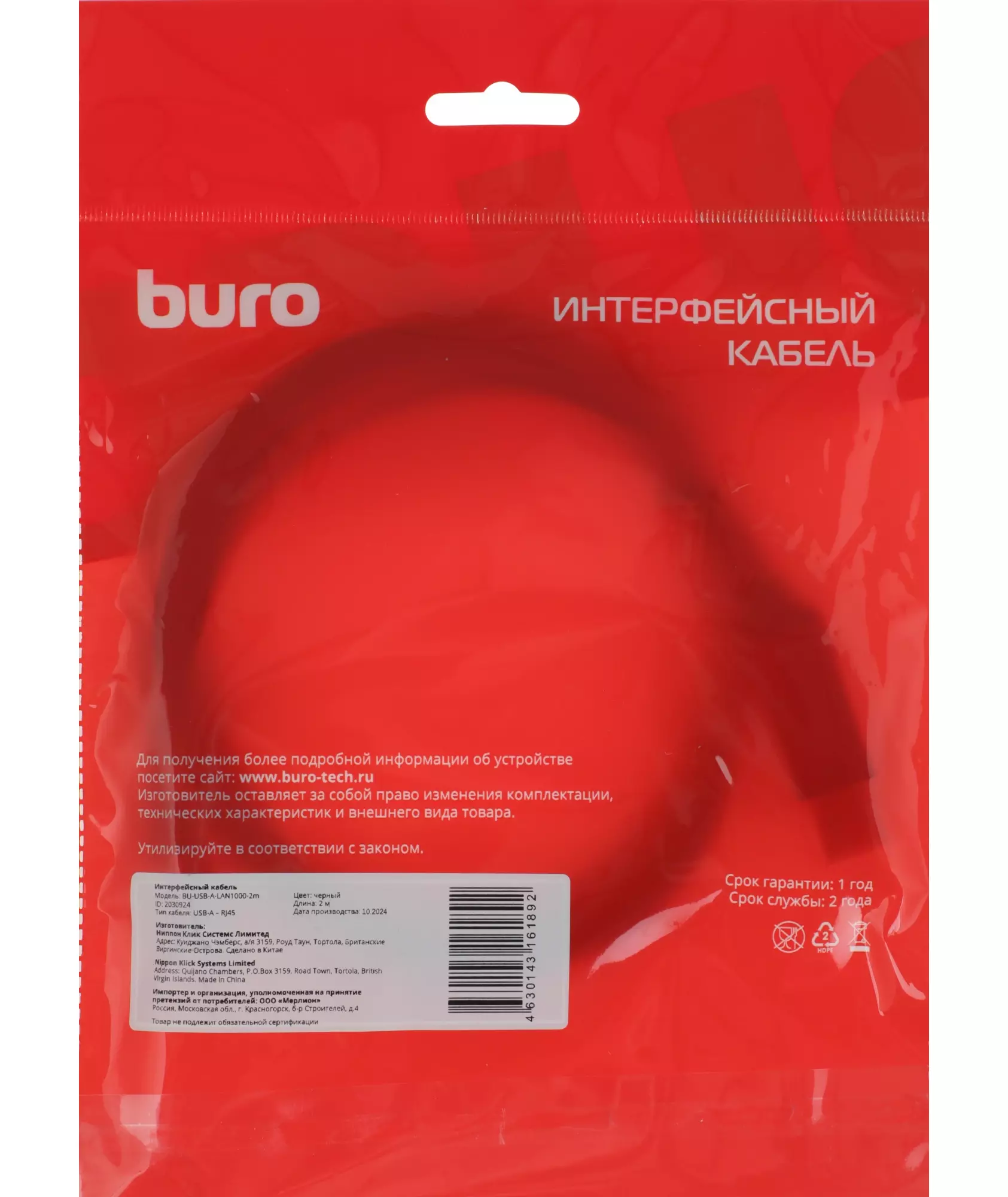 Описание BURO USB A (m) RJ-45 (m) 2м черный [BU-USB-A-LAN1000-2M]