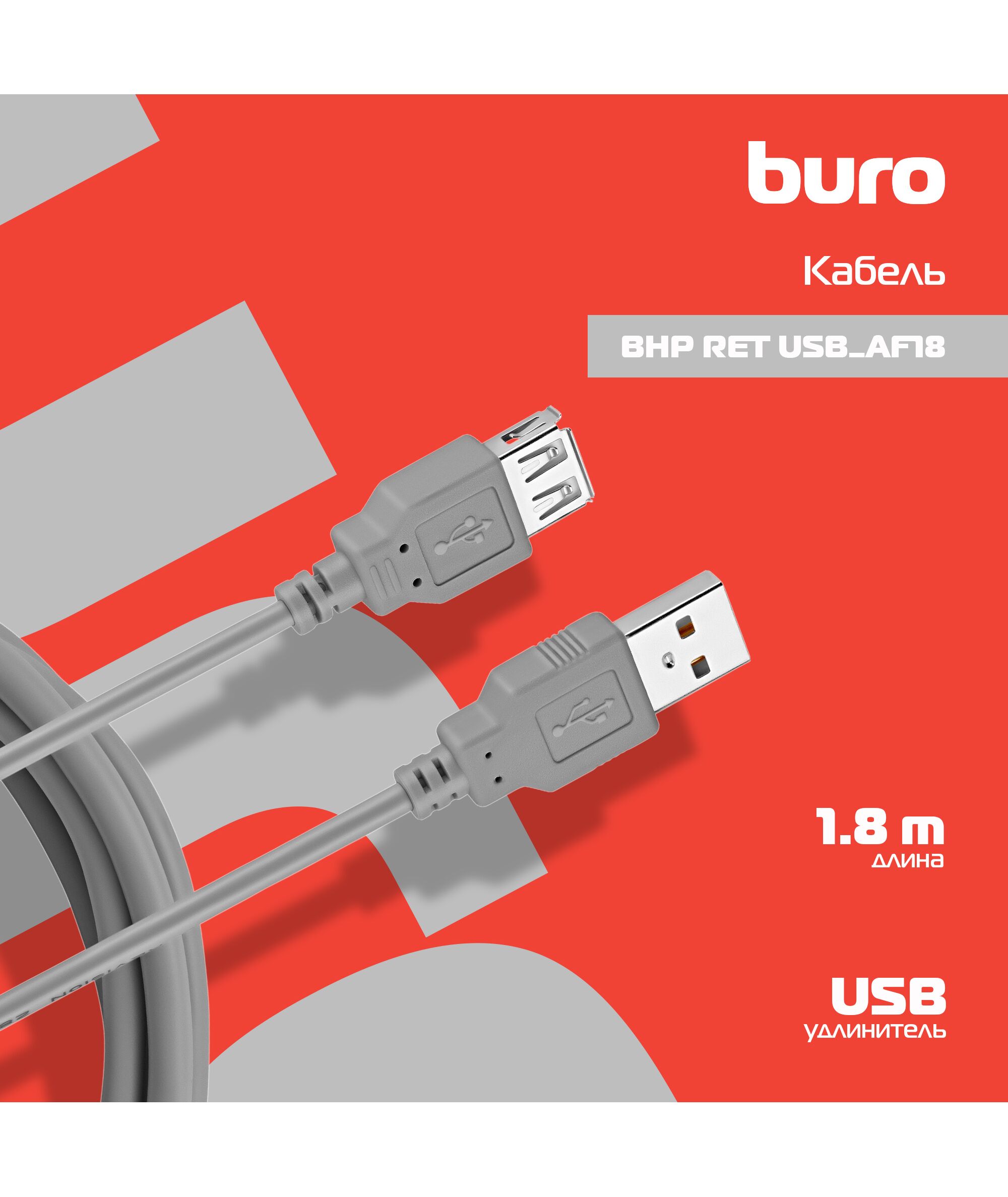 Кабель BURO USB A(m) USB A(f) 1.8м серый (блистер) RTL [BHP RET USB_AF18]