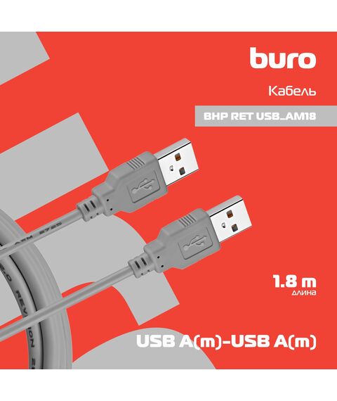 Кабель BURO USB A(m) USB A(m) 1.8м серый блистер [BHP RET USB_AM18]
