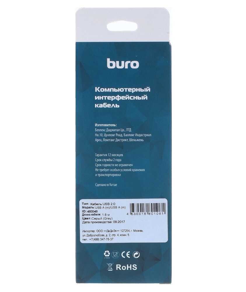 Описание BURO USB A(m) USB A(m) 1.8м серый [BHP RET USB_AM18]