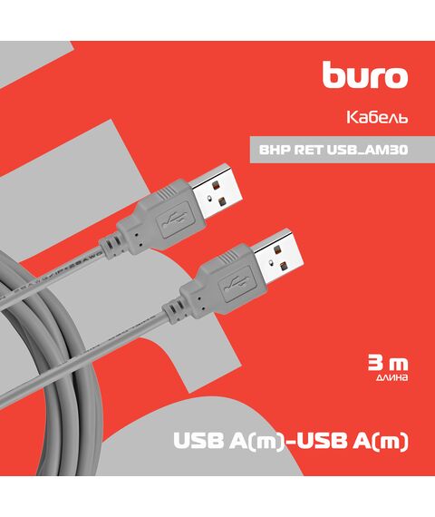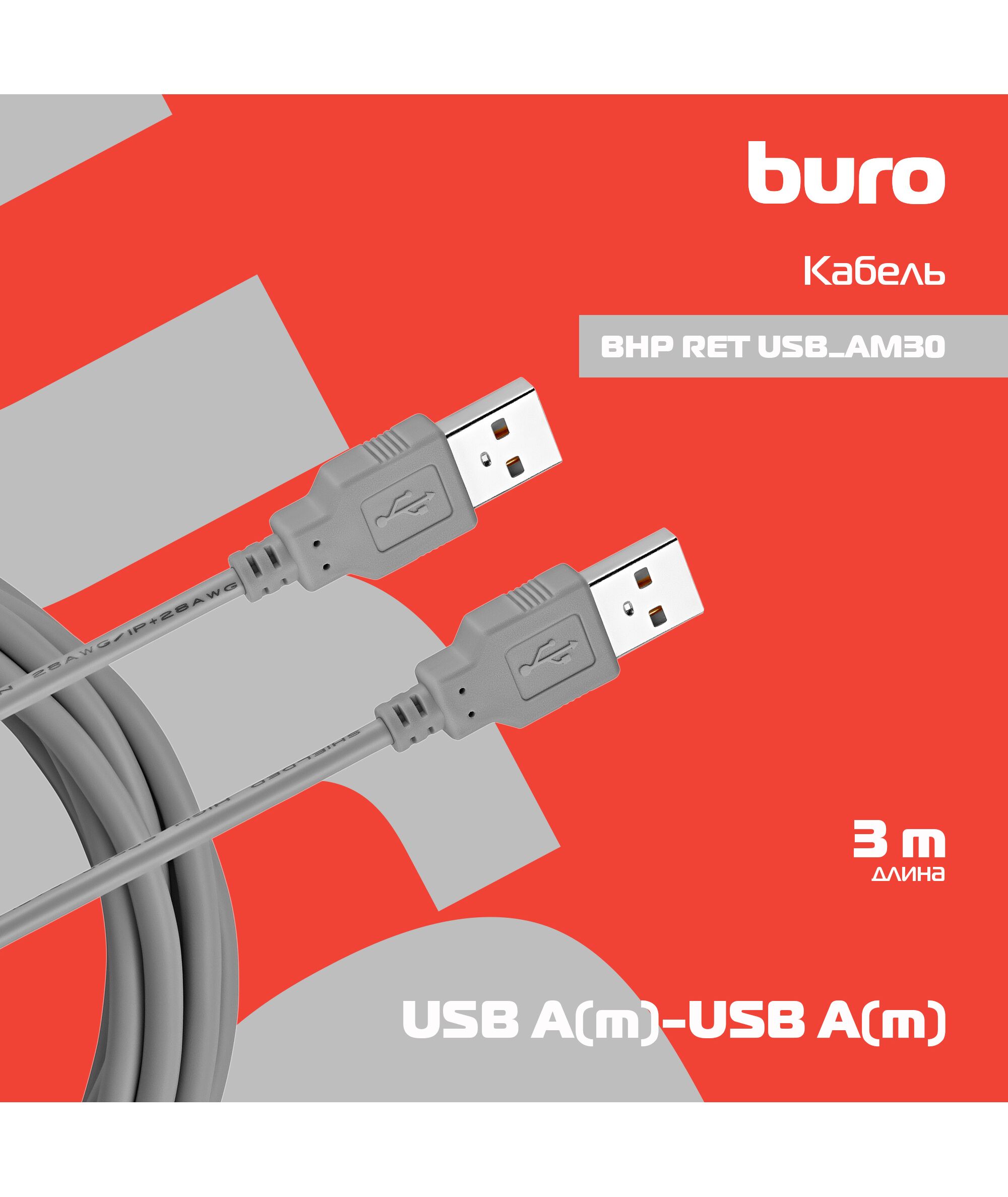 Кабель BURO USB A(m) USB A(m) 3м серый (блистер) [BHP RTL USB_AM30]