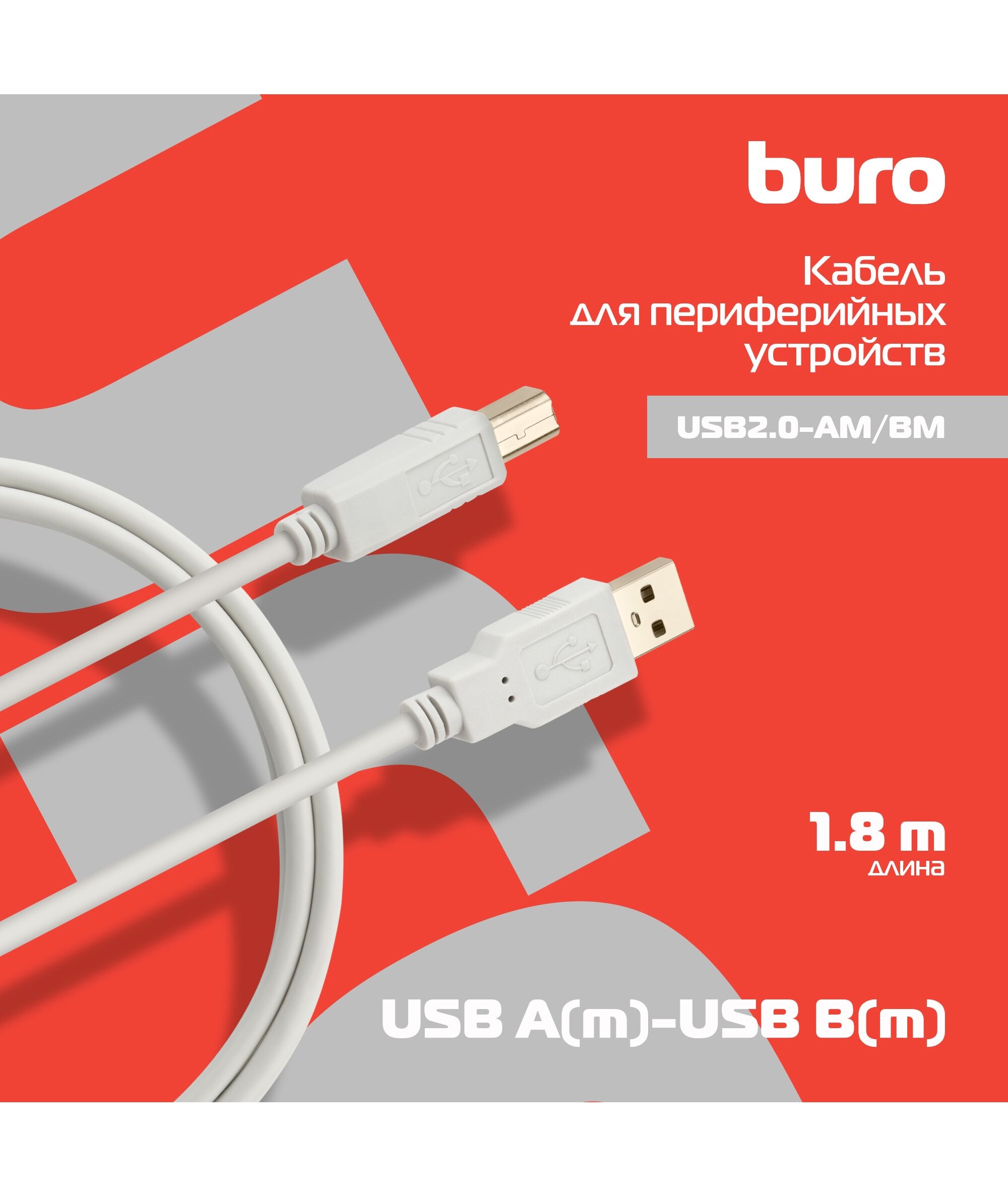 Кабель BURO USB A(m) USB B(m) 1.8м (USB2.0-AM/BM) серый