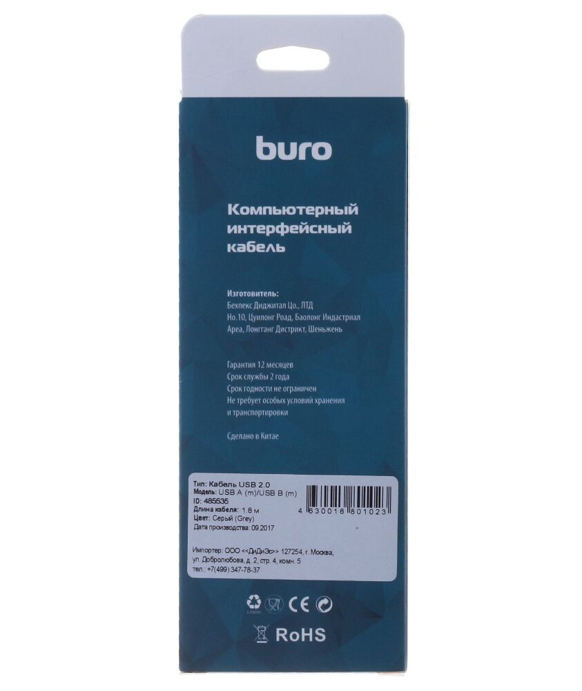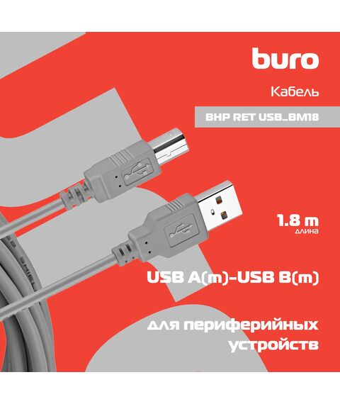 Кабель BURO USB A(m) USB B(m) 1.8м серый (блистер) RTL [BHP USB_BM18]
