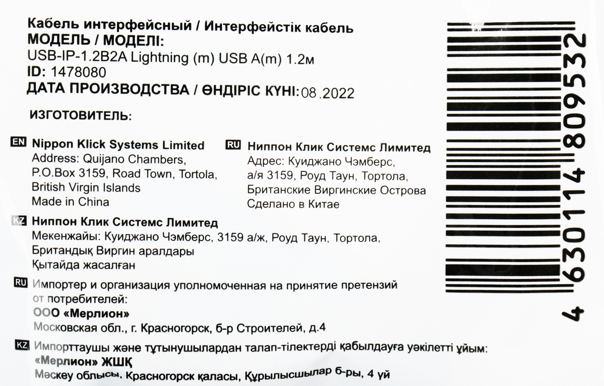 Кабель Buro USB-IP-1.2B2A USB (m)-Lightning (m) 1.2м черный