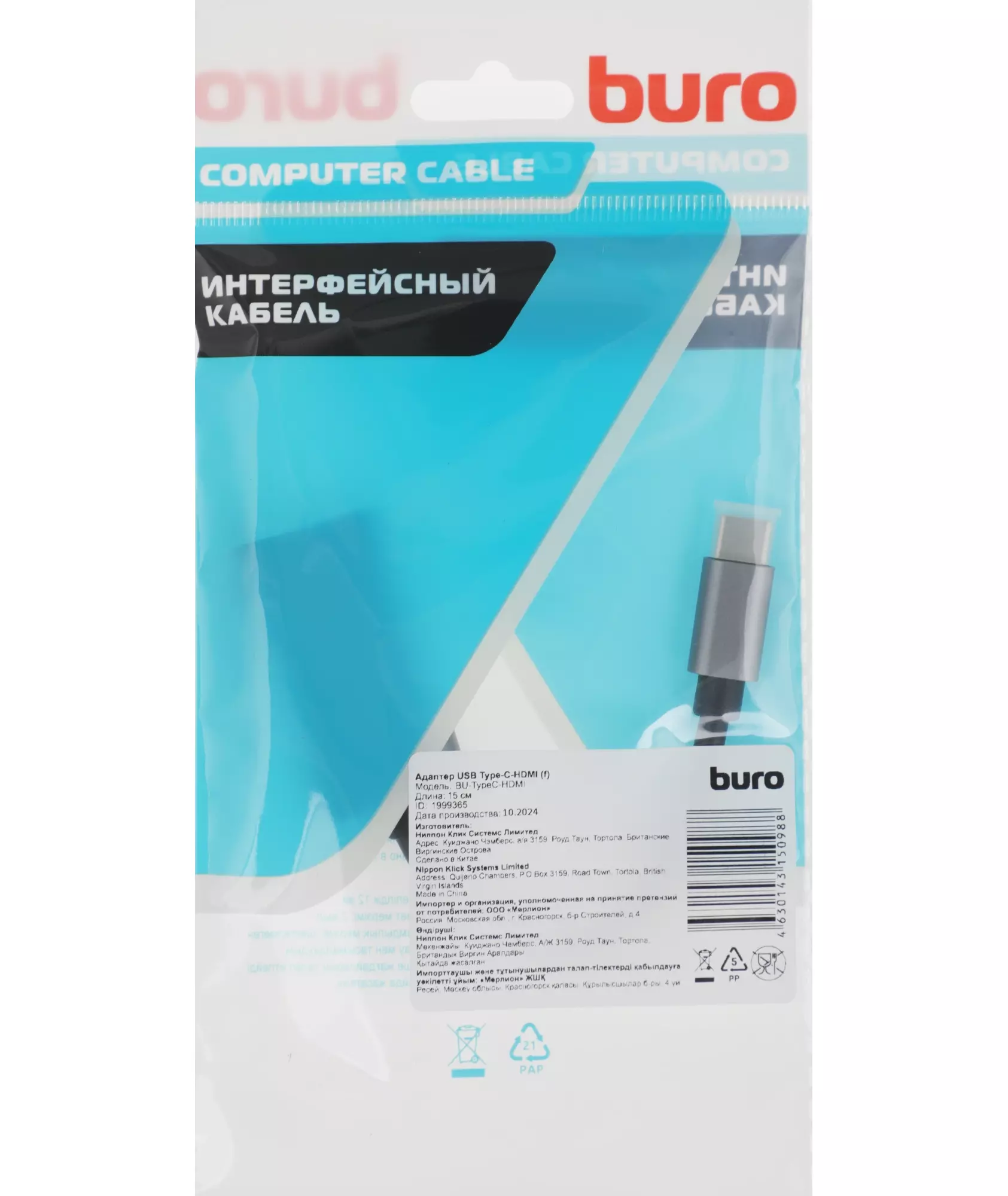 Наличие товара BURO USB Type-C HDMI (f) 0.1м [BU-TYPEC-HDMI(F)]