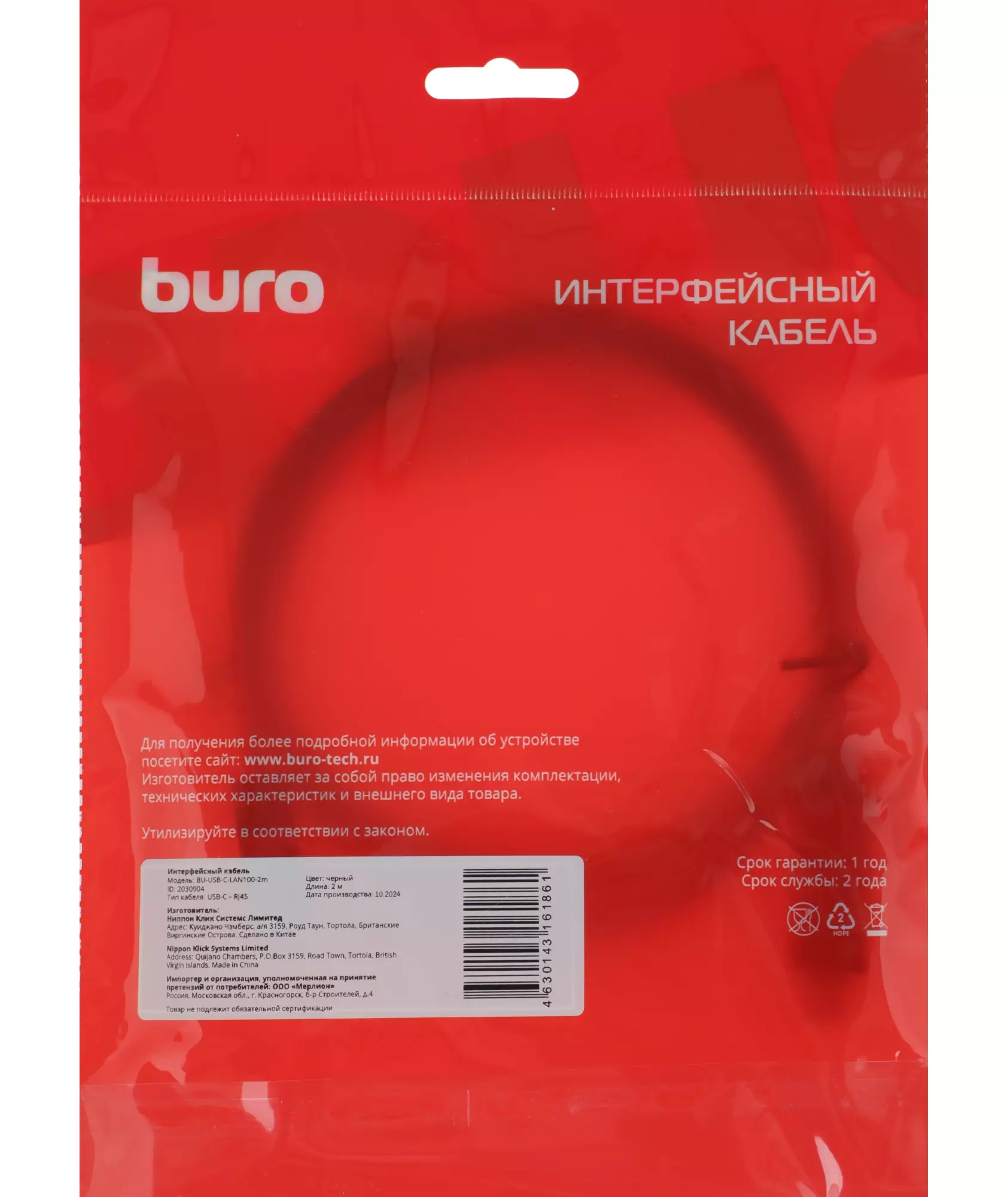 Описание BURO USB Type-C (m) RJ-45 (m) 2м черный [BU-USB-C-LAN100-2M]