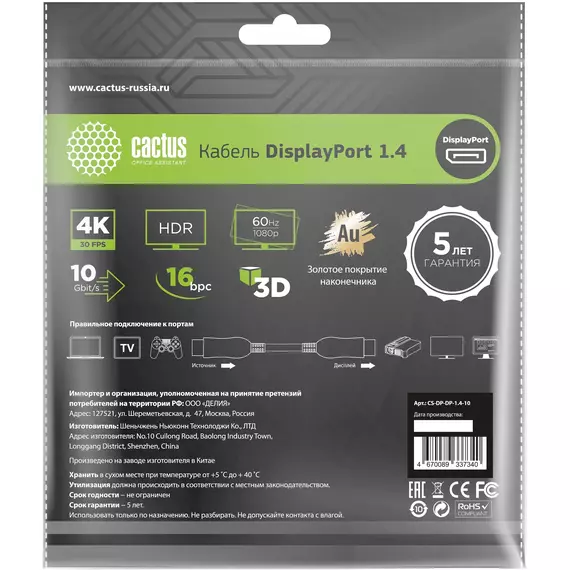 Наличие товара Cactus CS-DP-DP-1.4-10