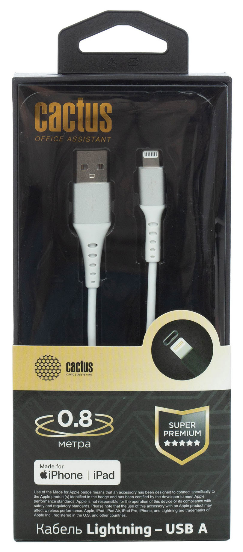 Кабель Cactus CS-LG.USB.A-0.8 USB (m)-Lightning (m) 0.8м белый блистер