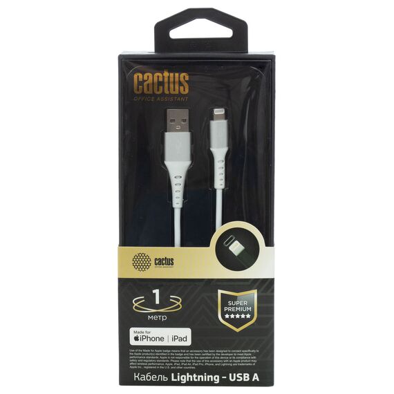 Кабель Cactus CS-LG.USB.A-1 USB (m)-Lightning (m) 1м белый блистер