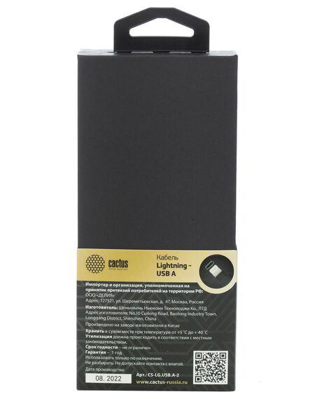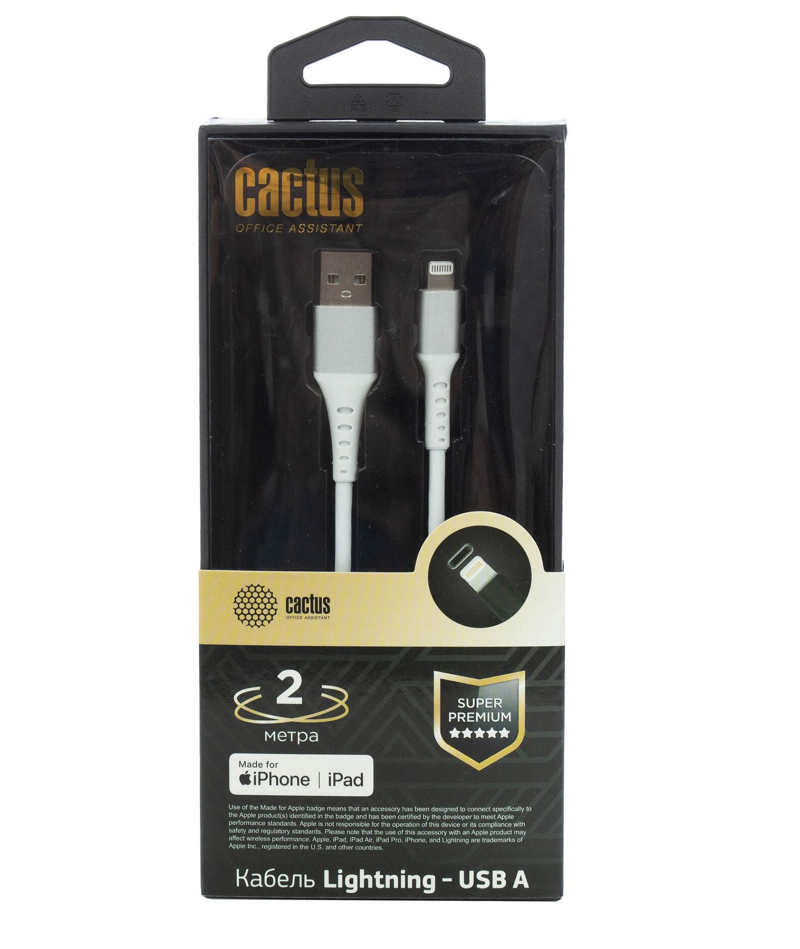 Кабель Cactus CS-LG.USB.A-2 USB (m)-Lightning (m) 2м белый блистер