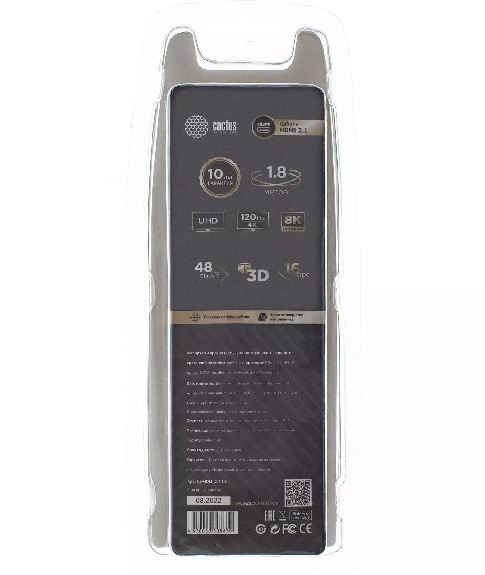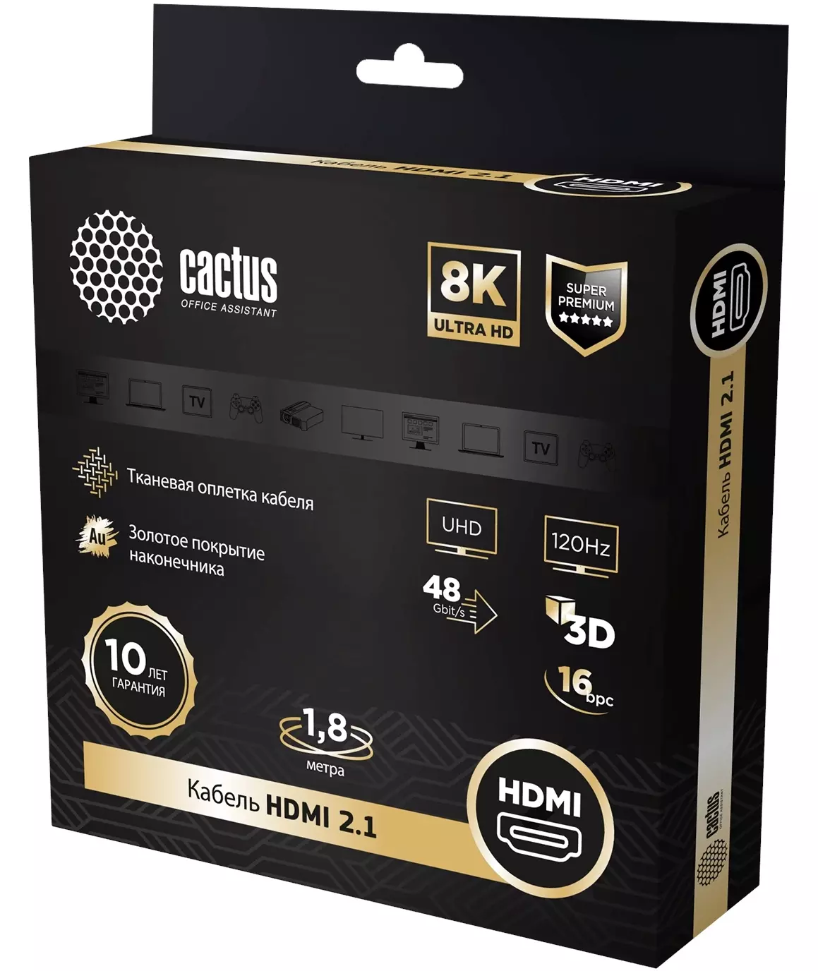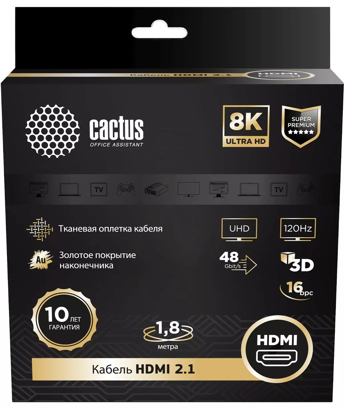 Описание Cactus HDMI (m)/HDMI (m) 1.8м. [CS-HDMI.2.1-1.8]