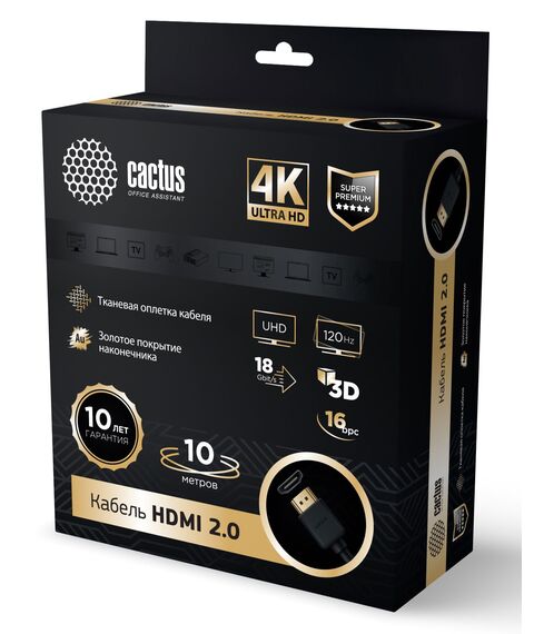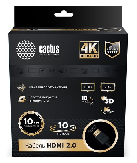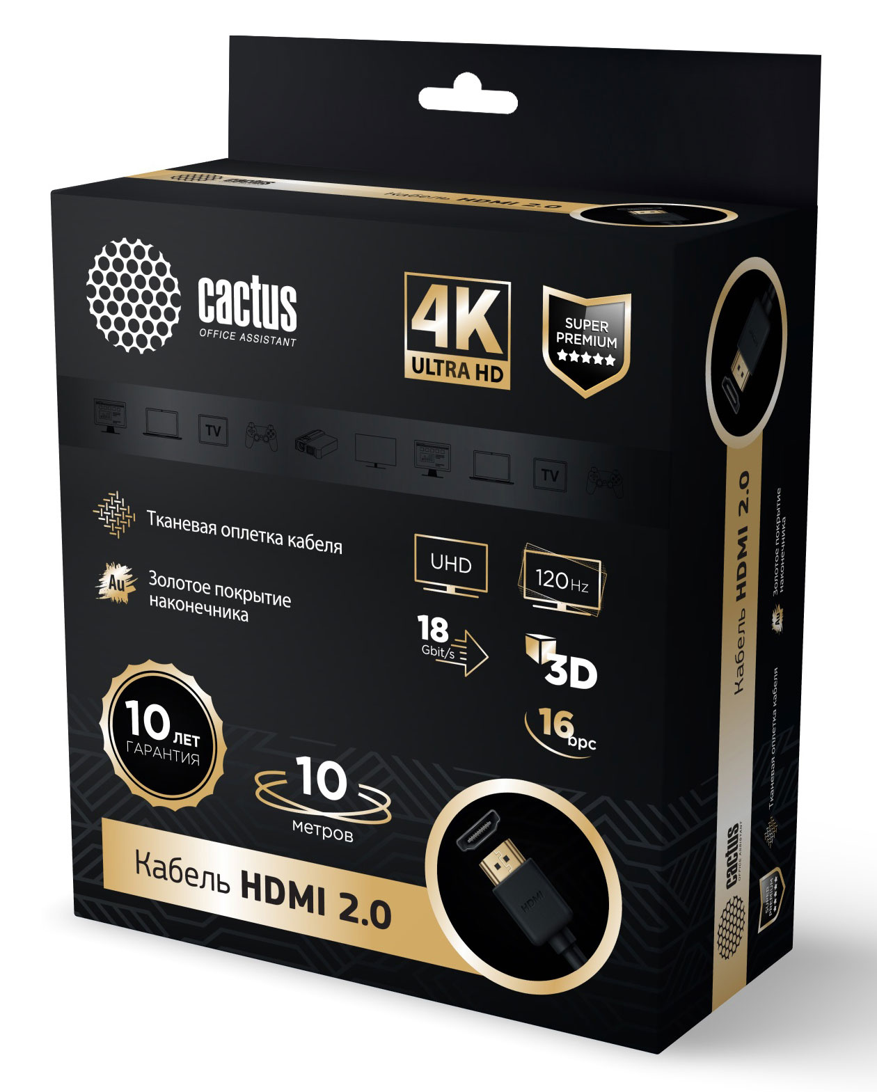 Описание Cactus HDMI (m)/HDMI (m) 10м. [CS-HDMI.2-10]