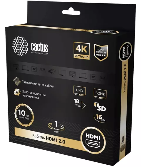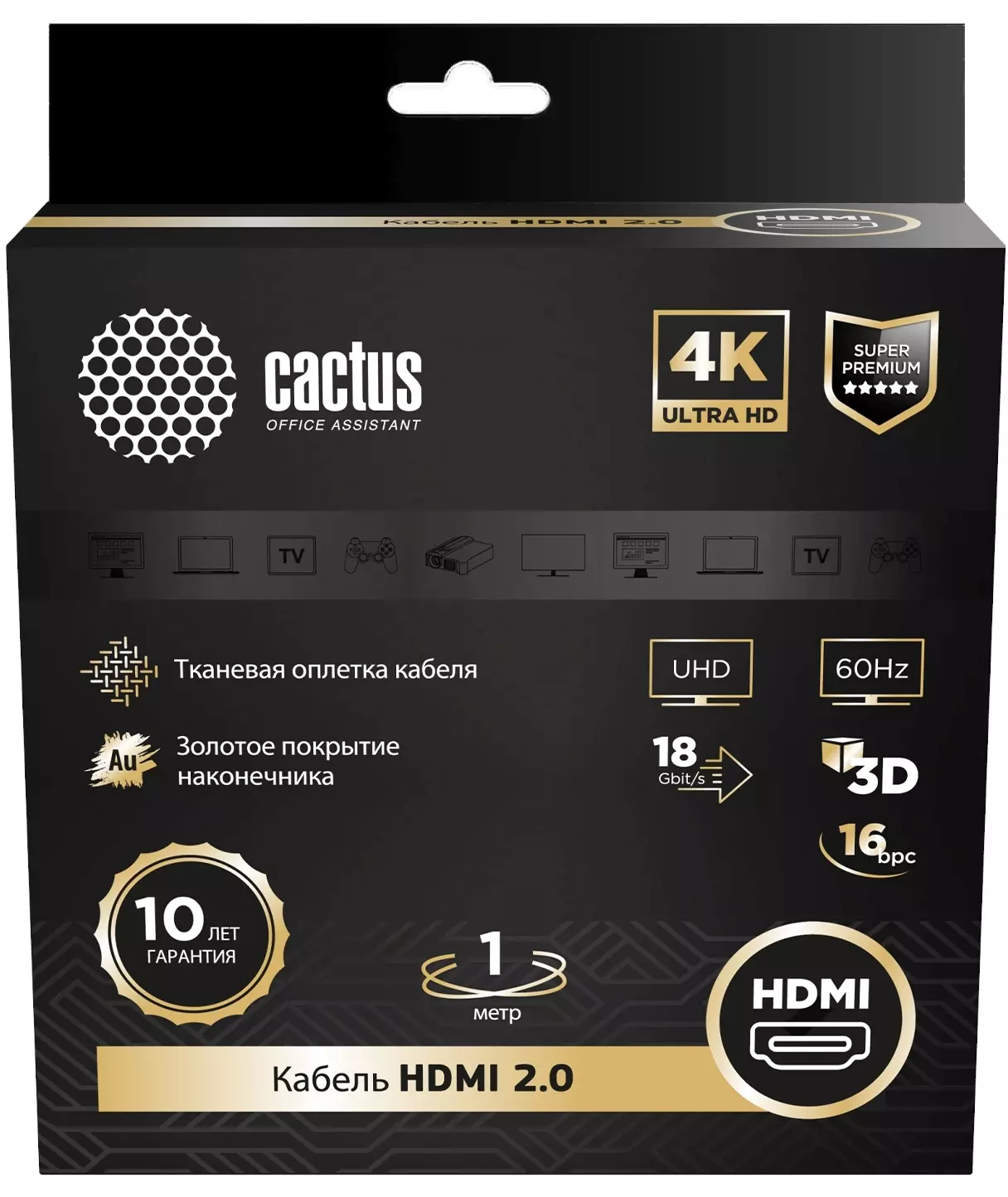 Описание Cactus HDMI (m)/HDMI (m) 1м. [CS-HDMI.2-1]