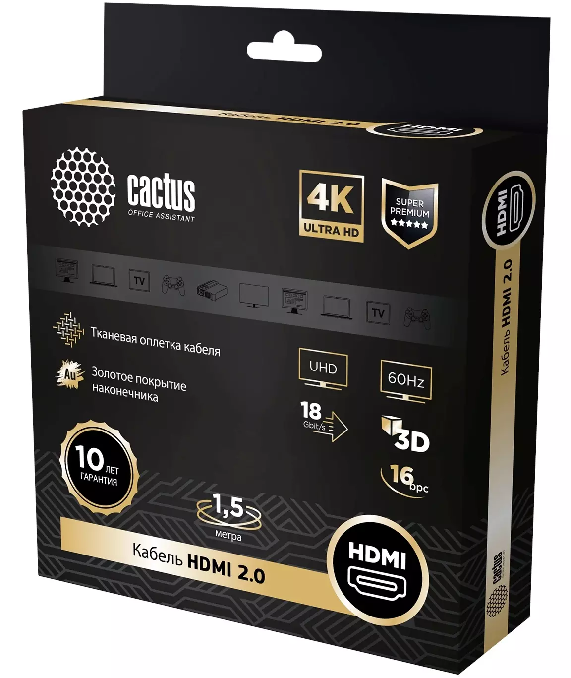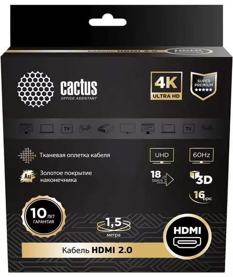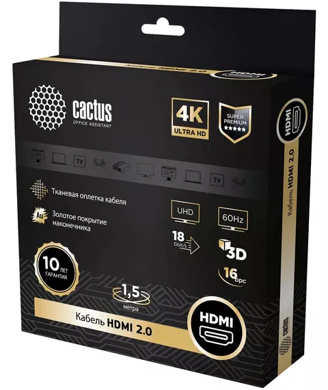 Описание Cactus HDMI (m)/HDMI (m) 2м. [CS-HDMI.2-2]