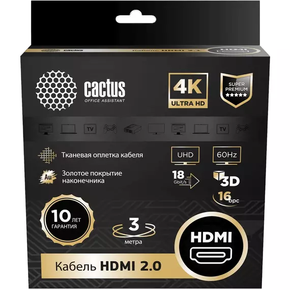 Описание Cactus HDMI (m)/HDMI (m) 3м. [CS-HDMI.2-3]