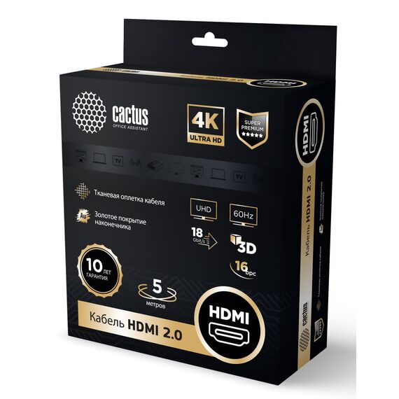 Описание Cactus HDMI (m)/HDMI (m) 5м. [CS-HDMI.2-5]