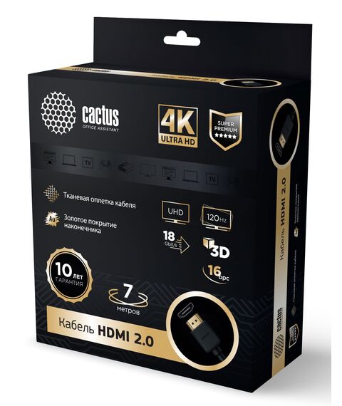 Описание Cactus HDMI (m)/HDMI (m) 7м. [CS-HDMI.2-7]