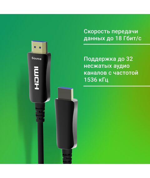 Активный оптический HDMI кабель для передачи изображения высокого разрешения (4К, 60Гц) на большие расстояния
