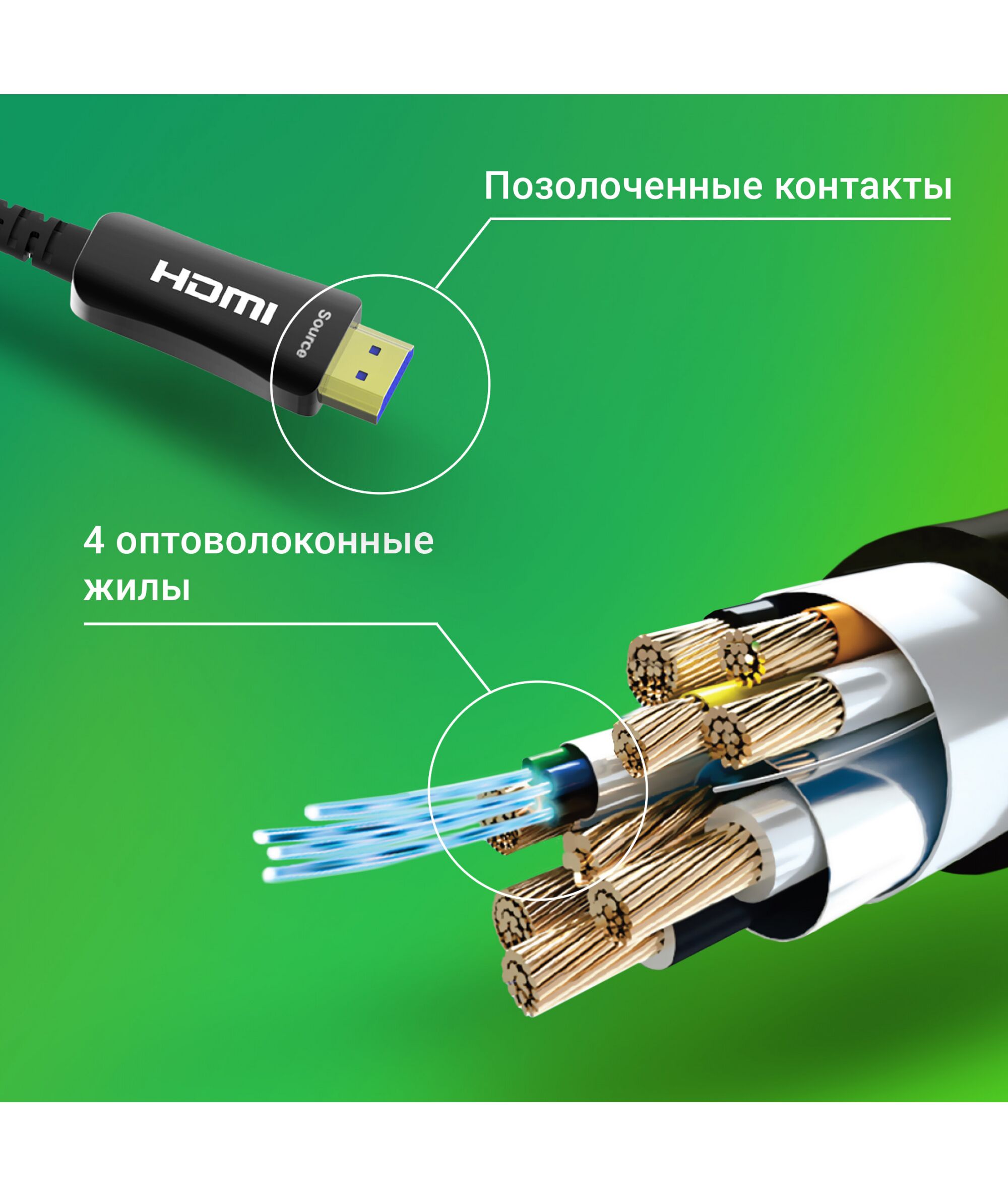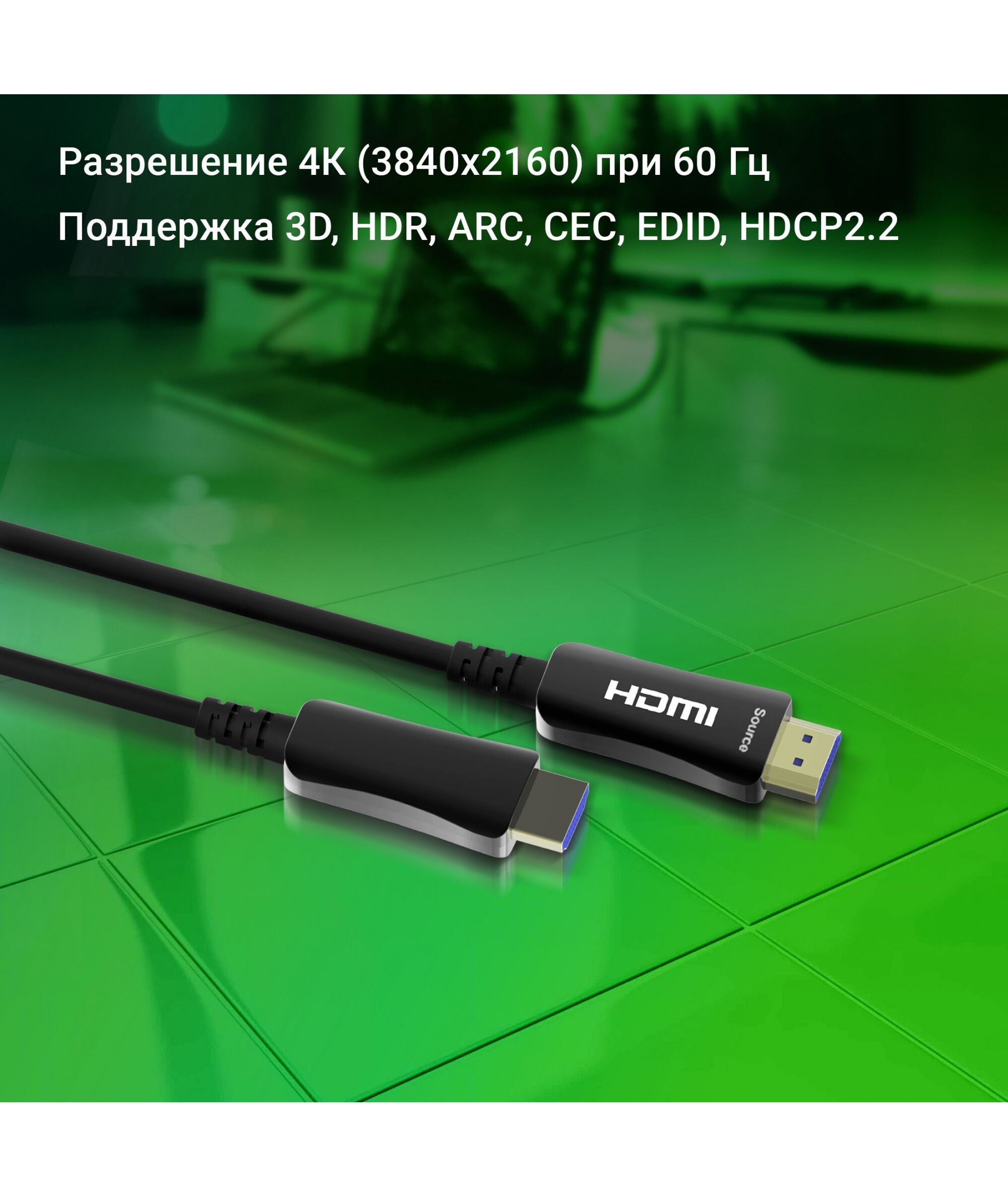 Активный оптический HDMI кабель для передачи изображения высокого разрешения (4К, 60Гц) на большие расстояния