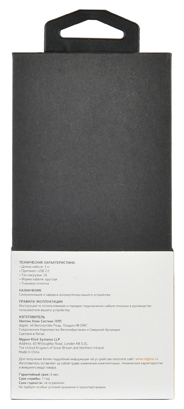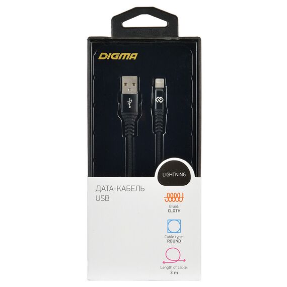Описание Digma USB (m)-Lightning (m) 3м [LIGHT-3M-BRAIDED-BLK]