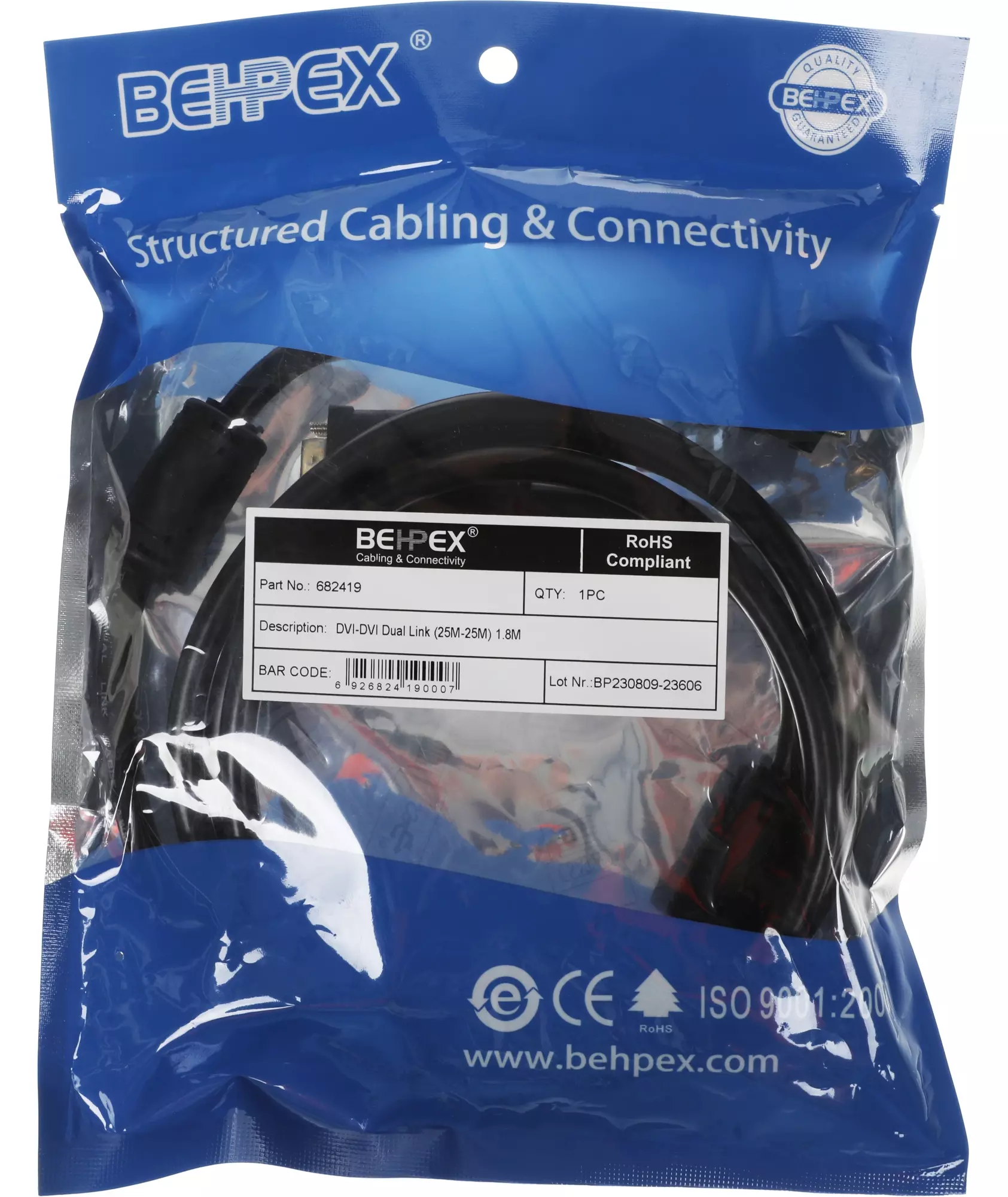 Кабель DVI-D для подключения системных блоков и ноутбуков к мониторам, проекторам и прочим устройствам вывода изображения с соответствующим портом. Длина кабеля 1,8 метра.