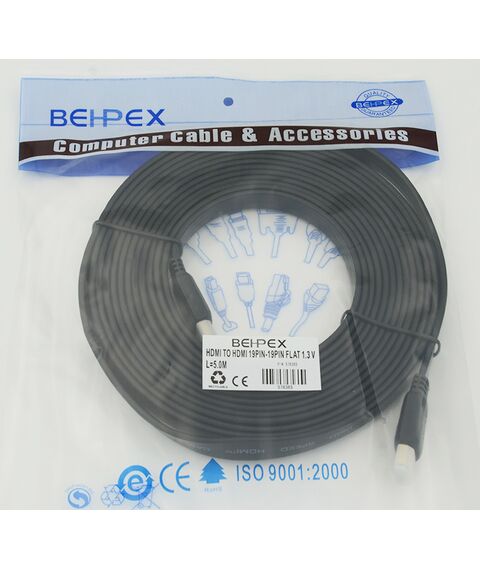 HDMI кабель для подключений компьютеров, ноутбуков Blu-Ray плееров и прочего оборудования к мониторам, телевизорам и проектора. Плоское сечение позволяет прокладывать кабель через узкие щели и трудно доступные места. Длина кабеля 5 метра, позволит разместить оборудование в оптимальном месте.