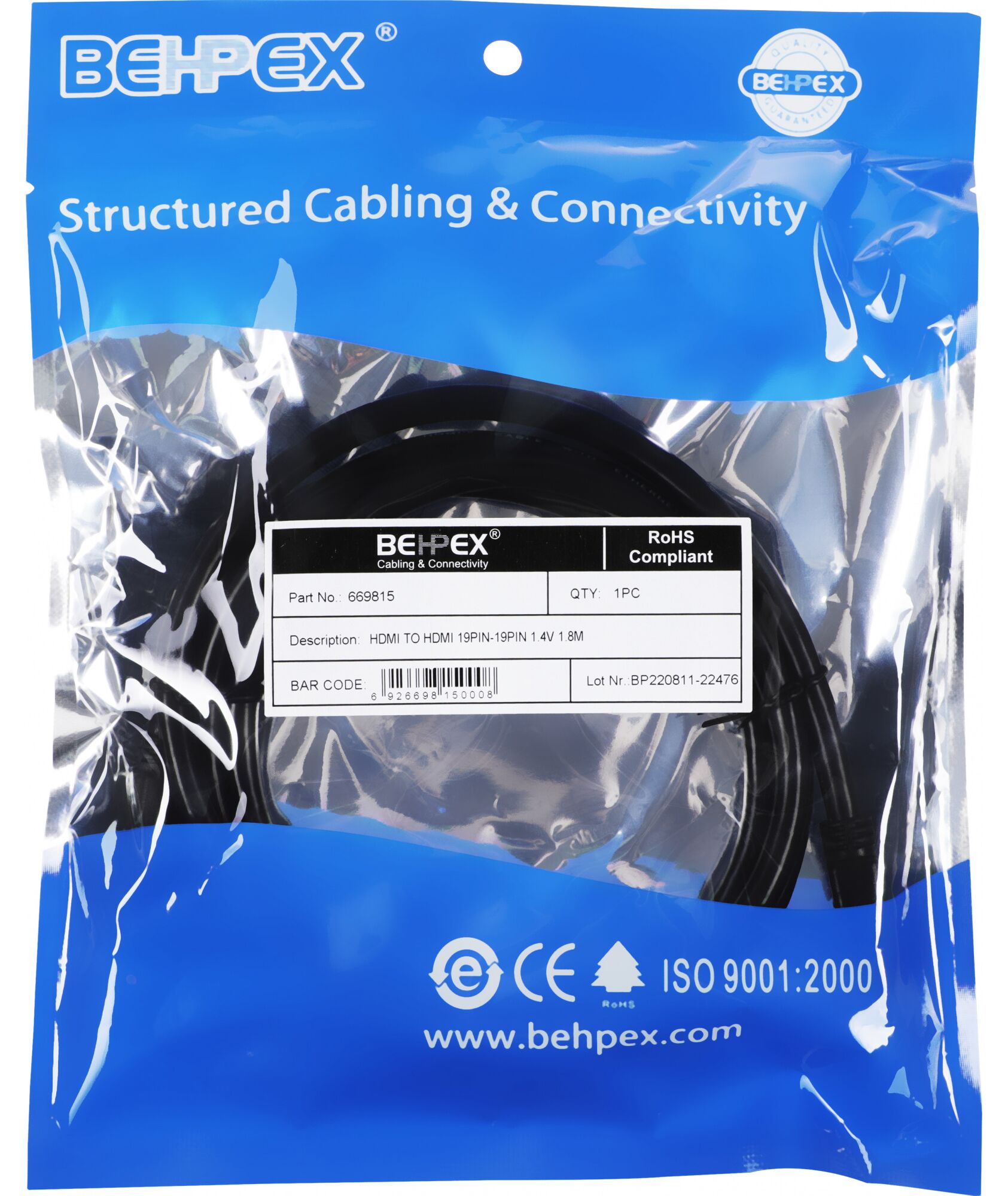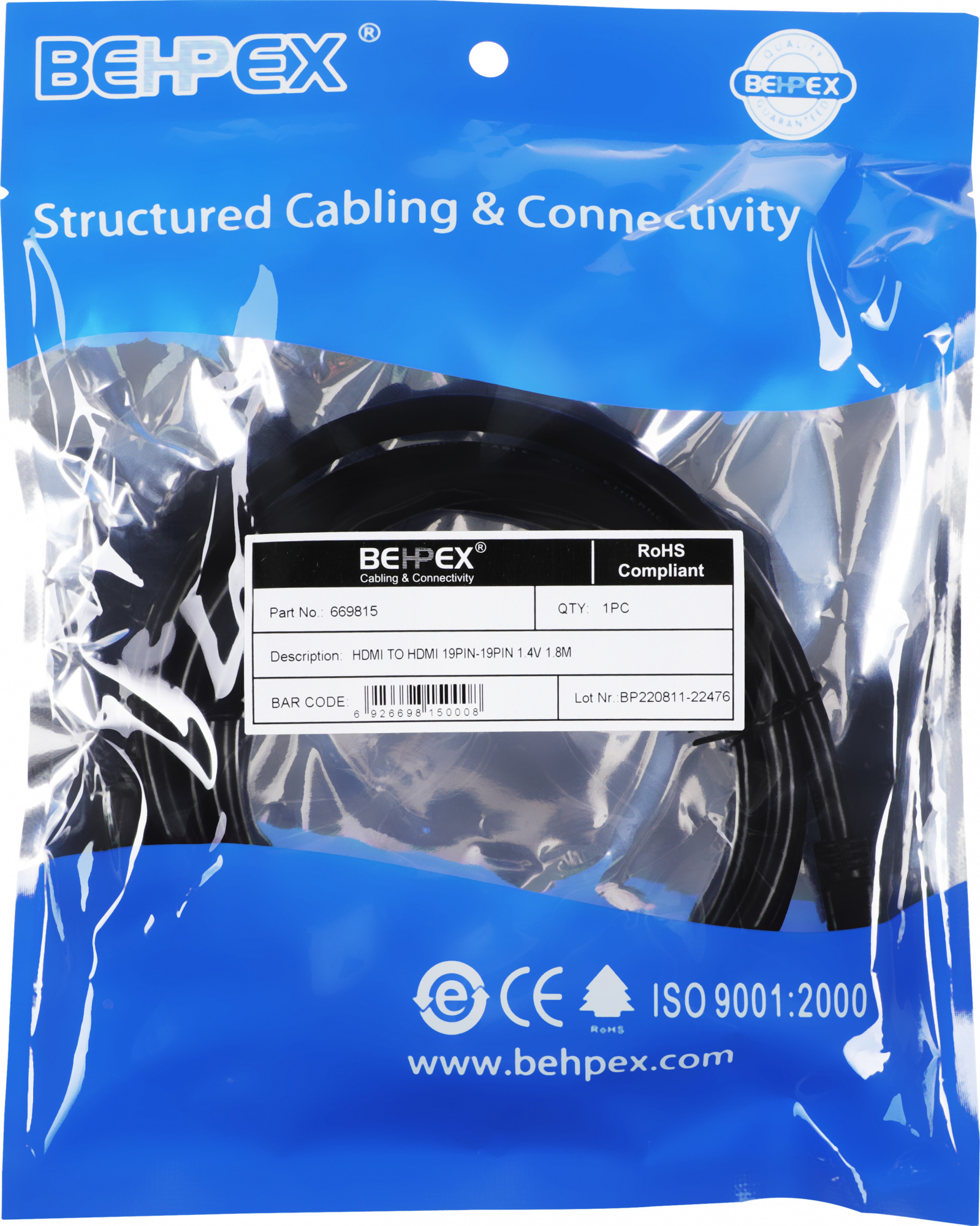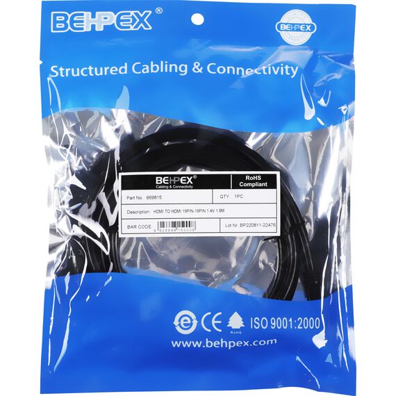HDMI кабель для подключений компьютеров, ноутбуков Blu-Ray плееров и прочего оборудования к мониторам, телевизорам и проектора. Длина кабеля 1,8 метра.